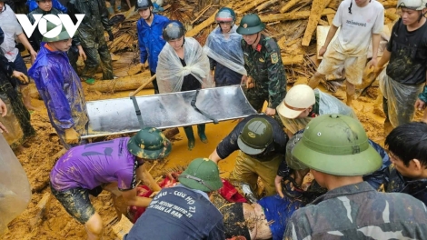 (VOVWORLD) - Ce jeudi après-midi, le Premier ministre Pham Minh Chinh s’est rendu dans le hameau de Làng Nu, dans la commune de Phuc Khanh (district de Bao Yên, province de Lào Cai), accompagnant des forces militaires et policières dans la recherche des corps ensevelis lors d’un glissement de terrain.