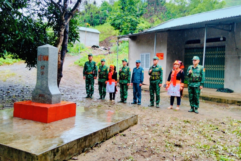 Cette borne unique en son genre se trouve à Hùng Pèng, un village Dao situé dans le district de Phong Thô, à la frontière avec la Chine. La frontière naturelle entre les deux pays, qui traverse la région, est un grand ruisseau nommé Pa Nâm Cum. Des bornes sont plantées des deux côtés de ce ruisseau et portent le même chiffre: 67. Le lieutenant-colonel Nguyên Hoàng Xuyên, du poste-frontière de Ma Lù Thàng, raconte que celle du côté vietnamien a été implantée en 2001.