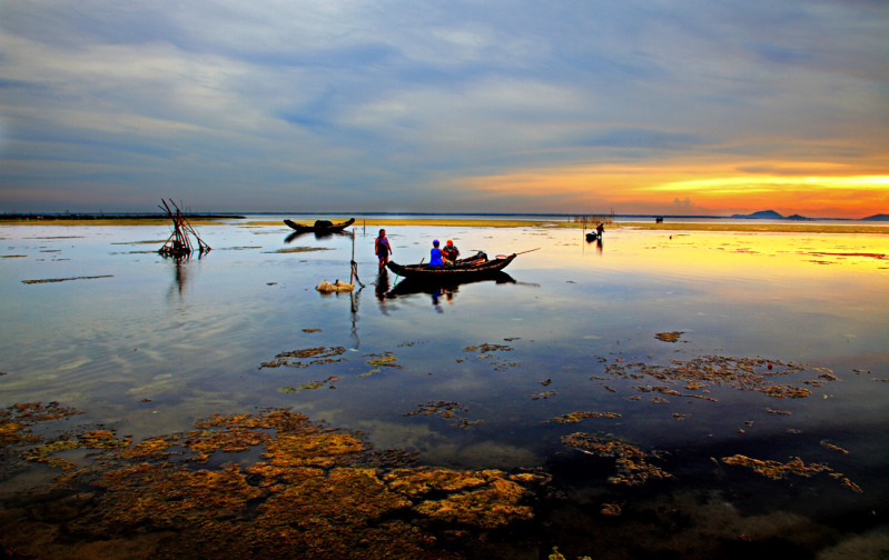 Situé à 12 km du centre ville de Hue, Tam Giang est la plus grande lagune en Asie du Sud-Est. D’une beauté sauvage, la lagune attire de nombreux contemplatifs. Les touristes chanceux essaient eux d’y passer la nuit, sûrs de ne pas manquer le coucher du soleil et l’aube, tout aussi riche de surprises. « Les paysages sont magnifiques au crépuscule quand le soleil, d’un rouge éclatant, illumine progressivement la surface de l’eau. Mais le grand spectacle pour moi, ce sont ces chapeaux coniques qui flottent dans l’eau… Evidemment je me suis interrogé sur la présence de ces chapeaux à cet endroit, et un bachoteur m’a expliqué que c’était une manière pratique de ramasser les petits crustacés et les coquillages dans les eaux peu profondes. De loin, c’est formidable de voir tous ces chapeau flottants », a fait savoir Nguyen Thanh Cong.