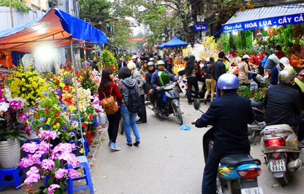 La plupart des vendeurs viennent des villages horticoles célèbres de la capitale comme Nghi Tàm, Nhât Tân, Tây Tuu… ou des districts limitrophes de Dông Anh et Soc Son, voire des provinces avoisinantes. A l’occasion du Tet, ce marché est une destination de prédilection pour bon nombre de Hanoiens. On écoute Huynh Ngoc: « On trouve ici tous types de fleurs: fleurs de pêcher et d’abricotier, kumquats, oeillets, chrysanthèmes, lys, fleurs du Sud et de Dalat. Des fleurs importées aussi. Le prix est très raisonable. Chaque fleur a sa signification particulière. Les fleurs de pêcher symbolisent le printemps, le kumquat est l’emblème des retrouvailles familiales alors que le lys rend plus chaleureux l’ambiance du Tet. »