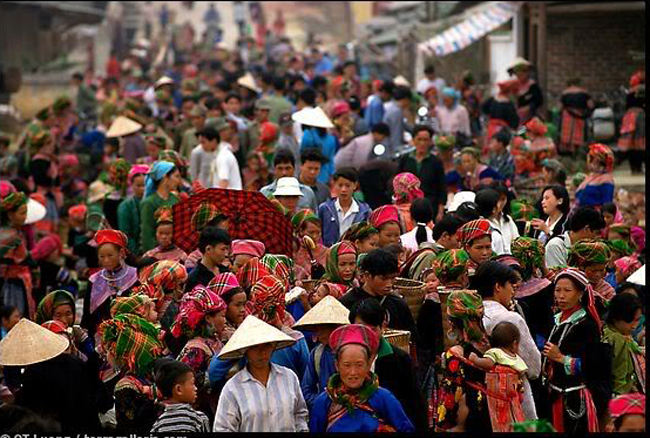 Les lieux de rencontres et de commerce montagnards sont très colorés, grâce aux vêtements de brocatelles des minorités ethniques. C’est le cas notamment de ceux de Mèo Vac, Dông Van, Quan Ba, Hoàng Su Phi et Xin Mân, à Hà Giang, organisés au niveau des communes. Leurs dates d’ouverture sont curieuses car ils se réunissent chaque semaine moins un jour, le dimanche, le samedi, le vendredi et ainsi de suite.