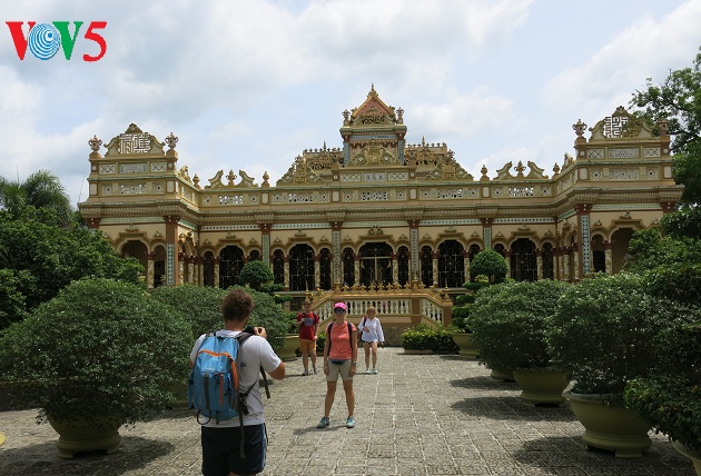 «Inscrite au patrimoine national, la pagode de Vinh Tràng fait partie des 100 sites religieux les plus emblématiques du Vietnam. Chaque week-end, elle accueille de très nombreux visiteurs vietnamiens et étrangers de passage à Tiên Giang.»