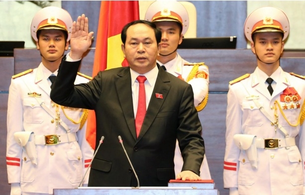(VOVworld) - Ce samedi matin, avec 91,5% des voix, l’Assemblée nationale a élu le général Tran Dai Quang, membre du bureau politique du Parti communiste vietnamien, au poste de président de la République. Conformément à la Constitution de 2013, le nouveau chef de l’Etat a prêté serment.