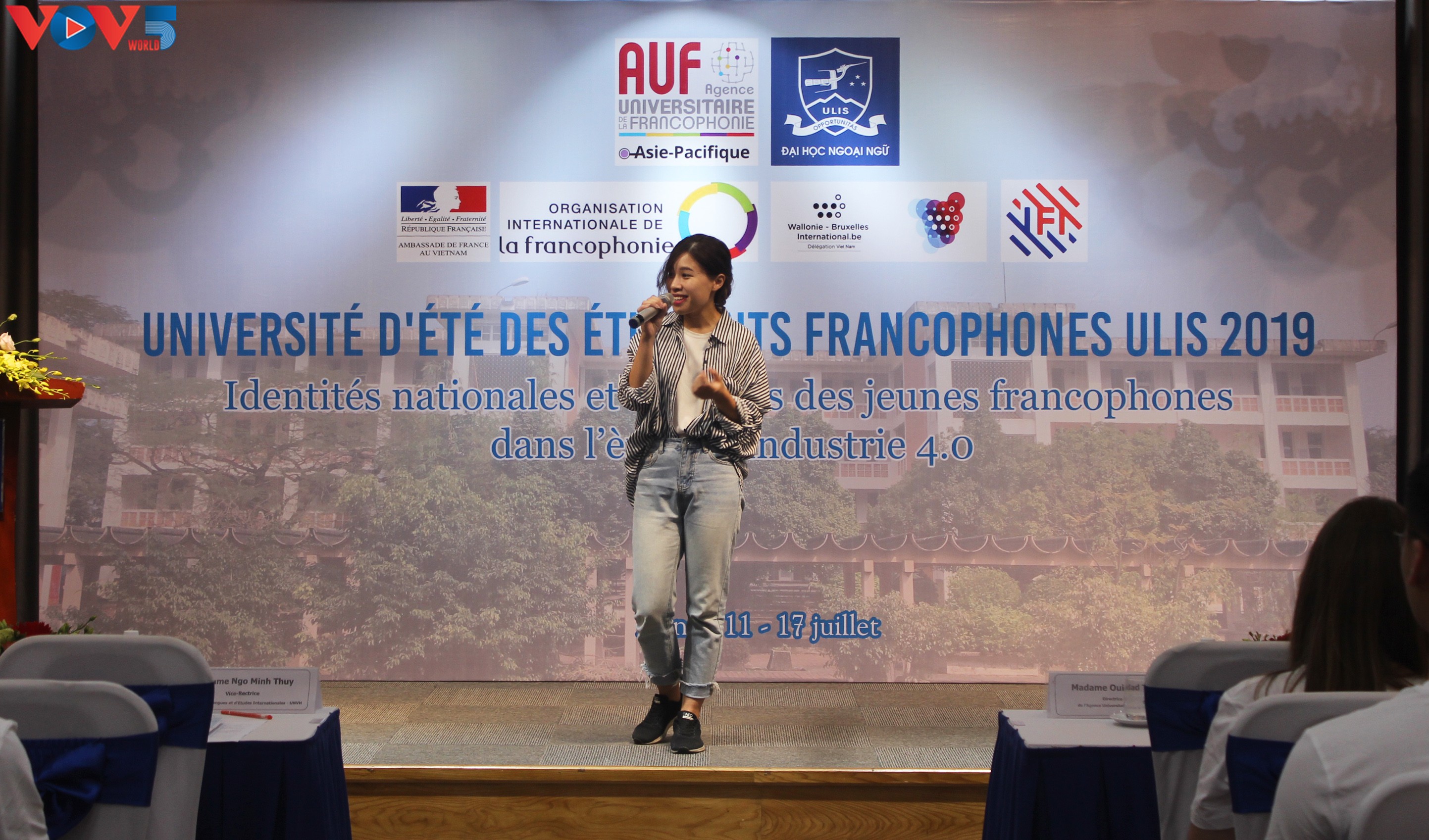 Placée sous le thème «Identités nationales et identités des jeunes francophones à l’ère de l’industrie 4.0», ce grand rassemblement des étudiants francophones a donc lieu du 11 au 17 juillet à Hanoï. Lors de la cérémonie d’ouverture qui a eu lieu le vendredi 12 juillet, Ngô Minh Thuy, la vice-rectrice de l’Université de Langues et d’Études Internationales, est revenue sur le thème choisi.