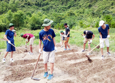 | Les élèves de Singapour et de Quang Ninh, participant à l'Ecoboat Ha Long, apprennent à cultiver des légumes sur le district insulaire de Quan Lan |