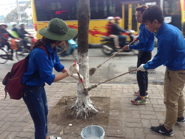 Selon une enquête récente, réalisée pour le mensuel H2, 40% des étudiants déclarent exercer une activité associative. Pour le Tet Binh Than 2016, 47.000 est le nombre exact d’étudiants bénévoles engagés. Confectionner des « banh chung » à l'occasion du Tet, préparer un repas pour les mères vietnamiennes héroïques, aider les personnes dans le besoin à trouver un logement, offrir des cadeaux, nettoyer les rues de la ville... et plus encore. Telles sont leurs missions. Ils sont faciles à reconnaître, avec leur chemise bleue et leur chapeau de brousse. Cela dit, chaque association a son propre symbole et son propre slogan. Nguyen Quang Sang, un étudiant de l’Ecole du Commerce de Hanoi : « Je suis le chef du groupe Linh Dong. Notre groupe a pour mission de nettoyer la rue Hoang Quoc Viet en deux jours. En une seule journée, on a déjà abattu les sept dixièmes du travail ! Notre mission consiste surtout à enlever les panneaux publicitaires qui sont collés sur les murs, à ramasser les ordures et à repeindre les ouvrages publics. Ce matin, on est allé offrir des cadeaux à quatre familles bénéficiant d’aides sociales. On va essayer de finir notre travail aujourd'hui et d'aller organiser les événements pour les enfants pauvres dès demain.»