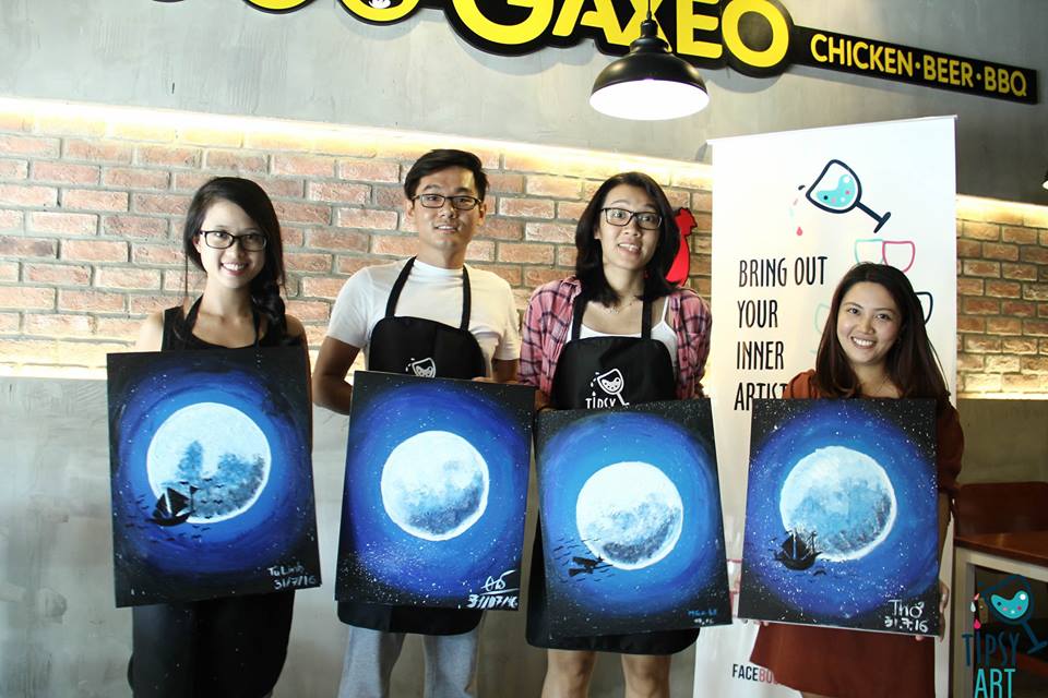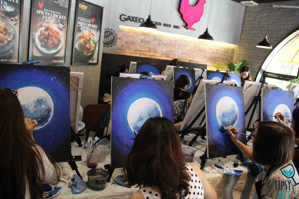 Tipsy Art a été fondé en décembre 2015 par Trang Nguyễn, Ngân Bùi et Lê Hoàng, et a connu très rapidement le succès. En l’espace de seulement six mois, sa page Facebook a attiré plus de 15 mille «amis», et plus de 2000 personnes ont assisté à ses séances. Ngân Bùi témoigne: «J'observe une attirance, chez les jeunes Vietnamiens, pour de nouveaux horizons, avec l’envie de se perfectionner. Au départ, on a voulu créer un endroit convivial pour nos amis souhaitant s’initier aux arts plastiques, en leur faisant passer un message, "c’est élémentaire et accessible". Puis par le bouche-à-oreille, la demande a fait que c’est devenu plus qu’un simple moment de divertissement. Nous avons alors décidée de fonder Tipsy Art, dont la notoriété est forte maintenant.»