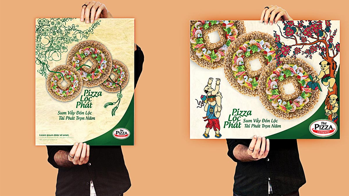 «Pour la pizza, on lui a donné une forme inspirée de la conception folklorique ‘Ciel rond et terre carrée’», nous précise Trinh Thu Trang. «C’est en fait une pizza ronde avec un trou carré au milieu, comme les anciennes pièces de monnaie du Vietnam. C’est aussi un symbole de prospérité. L’emballage a été décoré avec les motifs d’une estampe représentant sept étoiles censées apporter chance à celles et ceux qu’elles illuminent.»