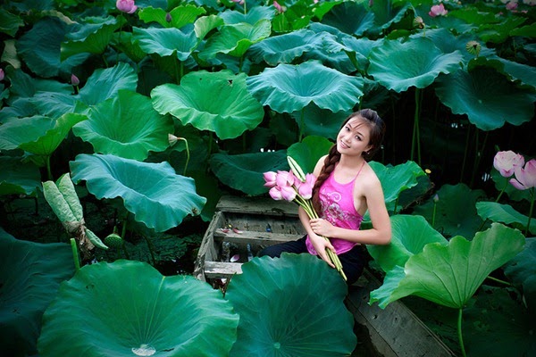 Hai Van, étudiante, quant à elle, se met sur une petite jonque au milieu du marais de lotus pour avoir des belles photos très originales. Hai Van nous confie : « J’ai plusieurs albums de photos mais toutes ont été prises avec le « ao dai », tunique traditionnelle. Maintenant, c’est le moment où le lotus s’épanouit. Alors, j’ai décidé de créer un autre album personnalisé avec le « Yem dao » des jeunes filles d’autrefois. C’est vraiment très charmant. ».