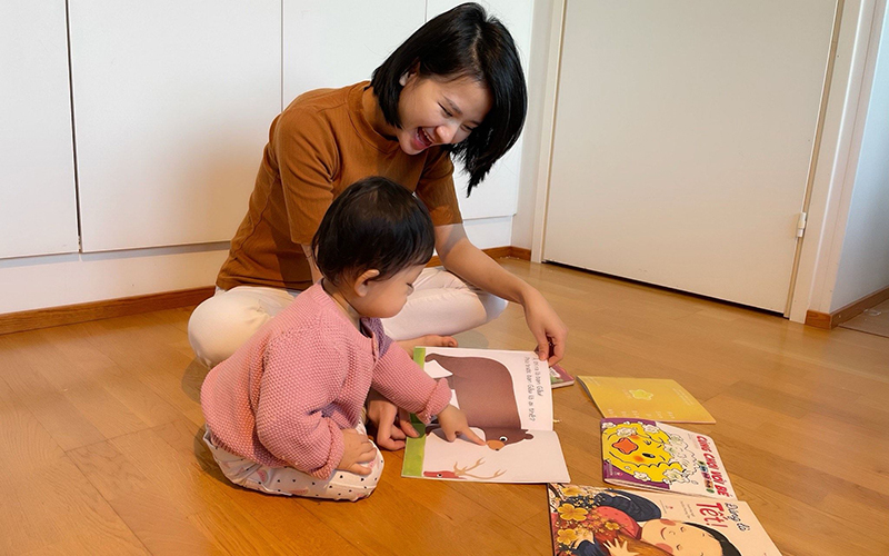 Nguyên Quynh Hanh, fondatrice de Tiêm Mot, et son enfant lisent des ouvrages en vietnamien. Photo: Tiêm Mot |