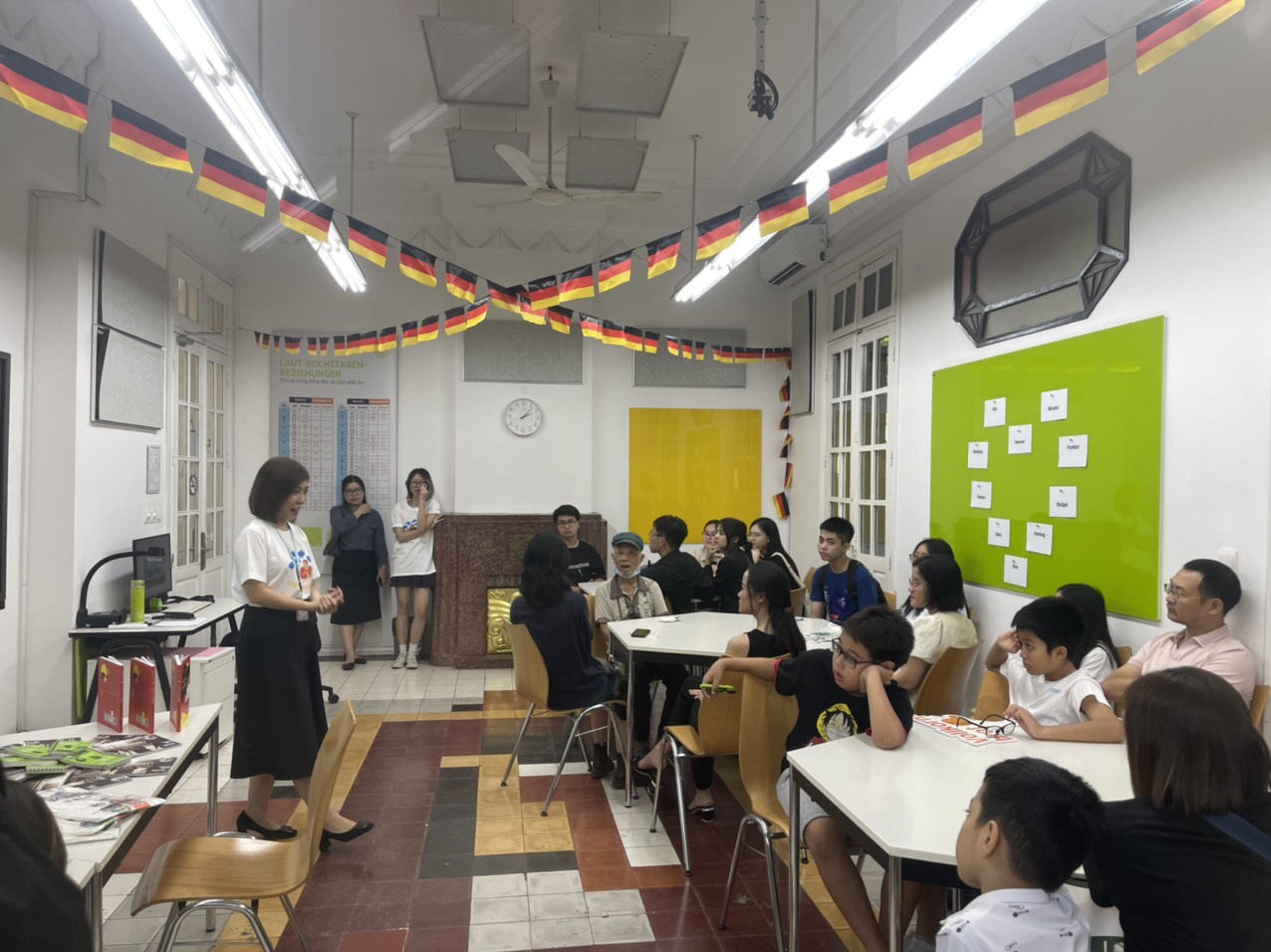 Pour le public, il s’agissait surtout de s’essayer à la prononciation tout en apprenant quelques nouveaux mots pour désigner les spécialités belges. Les autres classes étaient elles aussi bondées. Mai Linh, qui était venue avec son enfant dans un cours d’allemand, a été séduite quant à elle par le charme de cette langue germanique.