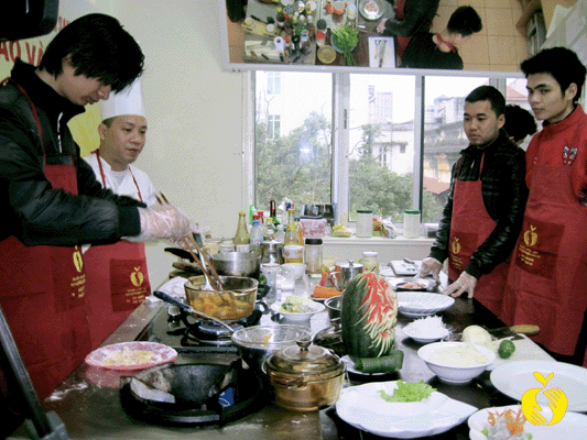 Ces dames sont très occupées, on l’a dit ! Du coup, les cours n’ont lieu que le week-end ! Pour les experts qui les animent, il s’agit avant tout de rendre l’atmosphère agréable et de démontrer que cuisiner n’est pas forcément une corvée. Chaque séance dure quarante minutes, quarante minutes au bout desquelles on échange des expériences dans une ambiance familiale. Ngoc Huong, expert du centre “la pomme d’or” : "Pour le cour “cuisine familiale”, nous proposons des plats très simples et nous donnons des conseils pour la sélection et la préservation des produits alimentaires. “devenez une ménagère intelligente!”. C’est le but ! La santé de chacun des membres de la famile en dépend ! En général, le cour dure une quarantaine de minutes et il y a trois recettes. Les apprenantes se montrent très concentrées. C’est un bon signe !"
