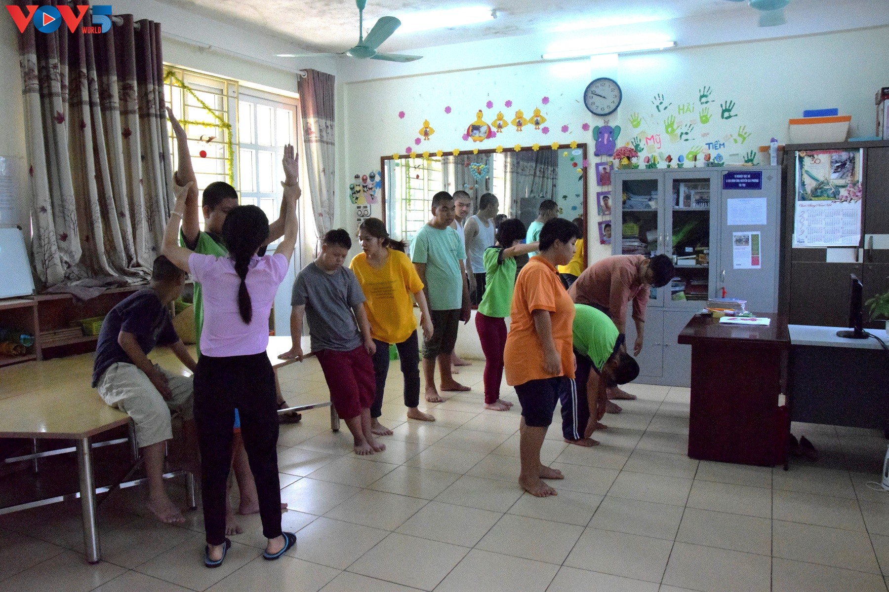 La structure accueille chaque année 110 à 120 pensionnaires : enfants dont les aïeux ont été exposés à l’agent orange, ou vétérans de guerre du Vietnam, tous atteints de pathologies plus ou moins lourdes. Les malades sont pris en charge par l’organisation qui leur prodigue des soins et dans certains cas des opérations chirurgicales. Les pensionnaires sont également “hébergés, nourris et ré-adaptés à une vie sociale” comme l’explique le site officiel présentant l’organisation. Les enfants peuvent suivre une scolarité où ils apprennent à lire, écrire et utiliser les outils informatiques. Comme l’explique Madame Nguyên Ngoc Hà, la responsable de l’accueil des visiteurs étrangers (Foreign Visitor Manager), ces structures ont pour objectif de permettre à tous et toutes d'être autonomes afin de mieux s'intégrer dans la société. Très heureuse de travailler au village depuis plus de 20 ans, elle nous a fait visiter le lieu. Le centre dispose aujourd’hui d’un espace médical mais aussi éducatif avec des classes spécialisées et une salle d’informatique. Ces infrastructures accueillent des enfants de 5 à 20 ans qui ont la possibilité, une fois l’âge adulte atteint, de rester dans le village s’ils le souhaitent.