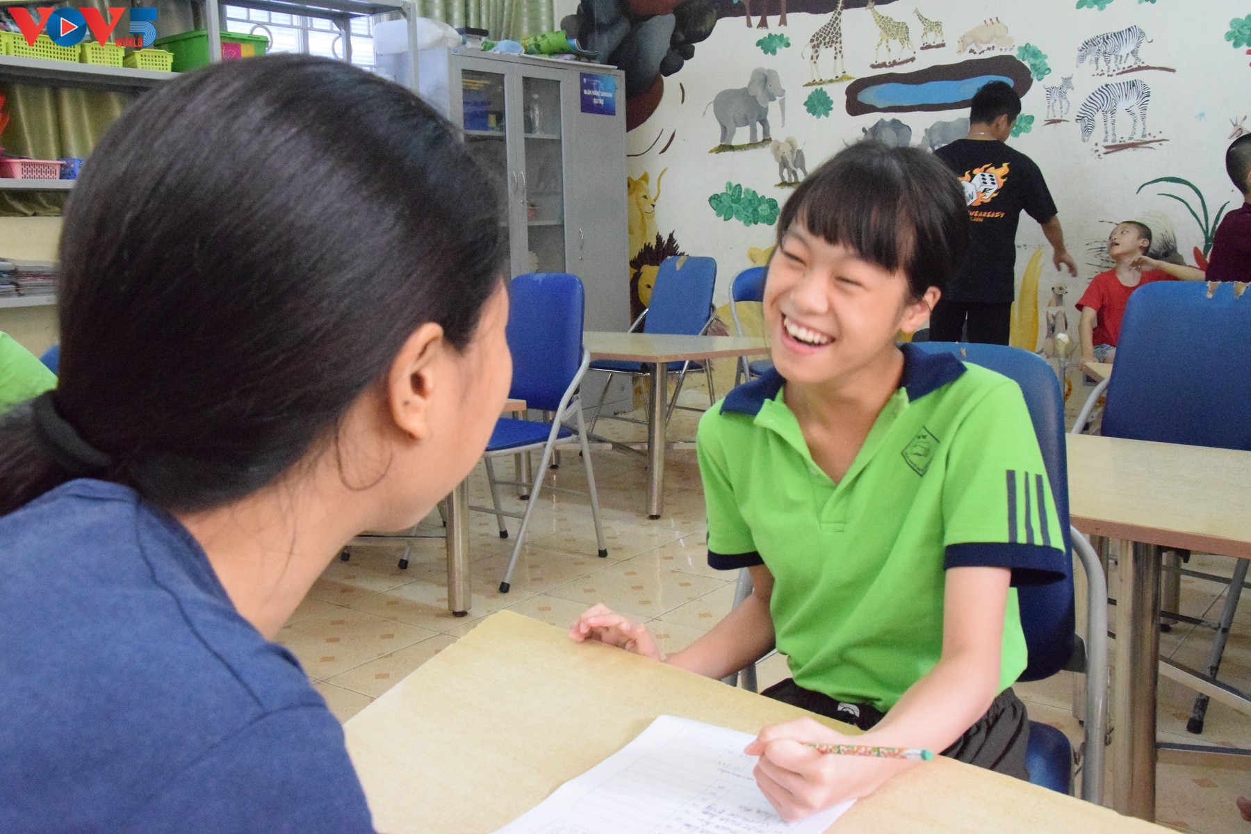 Le Village de l'Amitié est un havre de paix au beau milieu de la banlieue d’Hanoi. Les enfants qui séjournent plus ou moins longuement dans ce centre peuvent s’y épanouir et grandir avec sérénité. Encadrés par des professeurs, une équipe médicale et des volontaires locaux ou internationaux, chaque nouveau sourire ou nouvelle compétence acquise est une victoire. Une jeune volontaire vietnamienne dévouée au village, nous fait part de l'intérêt qu’elle porte à ces enfants :