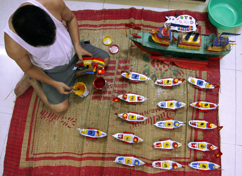 « Quand j’étais petit, ce jouet était vendu partout. On pouvait l’acheter facilement dans le vieux quartier, notamment aux rues Hang Ma, Hang Thiec, Luong Van Can mais aussi dans la banlieue. Mais maintenant, les jouets modernes envahissent les rues, et seulement quelques boutiques à Hang Thiec vendent encore ces bateaux. Beaucoup de personnes fabriquant ce jouet ont délaissé ce travail artisanal. Mais je n’en ai cure. Pour moi, c’est une véritable passion ! Mon espoir est de pouvoir maintenir les métiers artisanaux et les jouets traditionnels de notre pays pour les jeunes générations ».