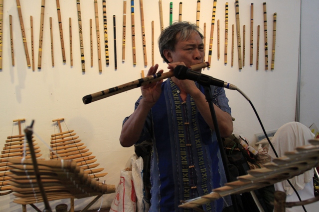 Aujourd’hui, Tao et ses camarades sont en train de travailler dans le salon où sont disposés partout des instruments en bambou : des T’Rung, des P’rong, et bien sûr, des flûtes de toutes sortes. Sur les murs, des photos, de Le Thai Son, prises lors de divers festivals, et quelques autres de ses plus brillants élèves. La flûte, Le Thai Son l’a dans le sang, depuis sa plus petite enfance, au point de faire corps avec elle : « Ce sont les blessés de guerre qui étaient soignés dans mon village natal qui m’ont fait découvrir la flûte, quand j’avais 7 ou 8 ans. Grâce à la musique, ils avaient toujours le moral au beau fixe ! Ils ont pris du bambou - du bambou, on en trouve partout dans le Nord - pour fabriquer des flûtes. Et ils ont appris aux enfants du village à en jouer. Ça a été le début d’une très grande passion qui ne m’a jamais quitté. C’est comme ça que j’ai décidé de devenir flûtiste professionnel ».