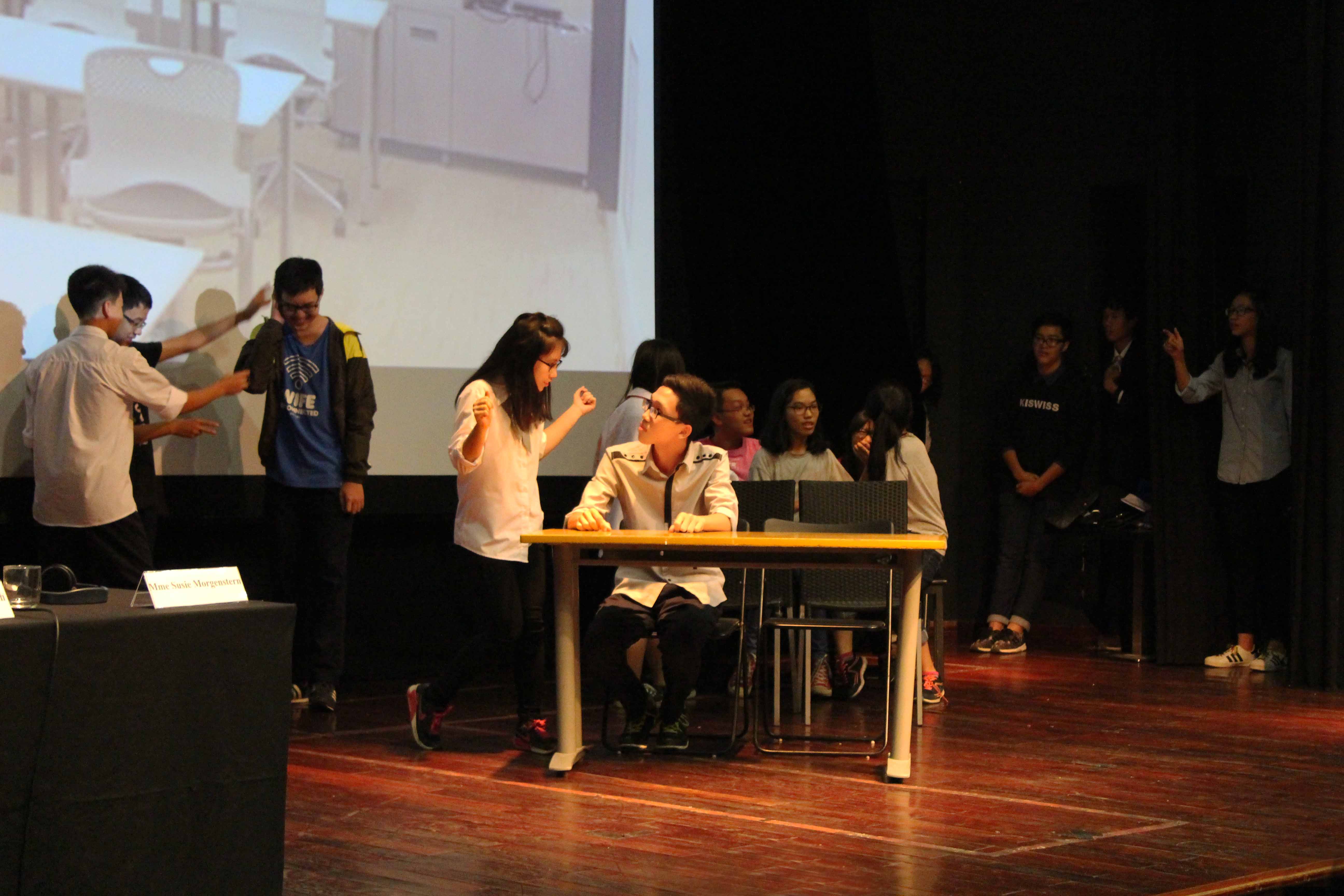 Đặng Vũ Lam Phương, un camarade de Mai : « C'est une scène que toute ma classe a inventée et qui est basée sur quelques événements, les plus intéressants du roman, selon nous. C'est la scène où tout le monde découvre que Victoire a gardé un bébé ».