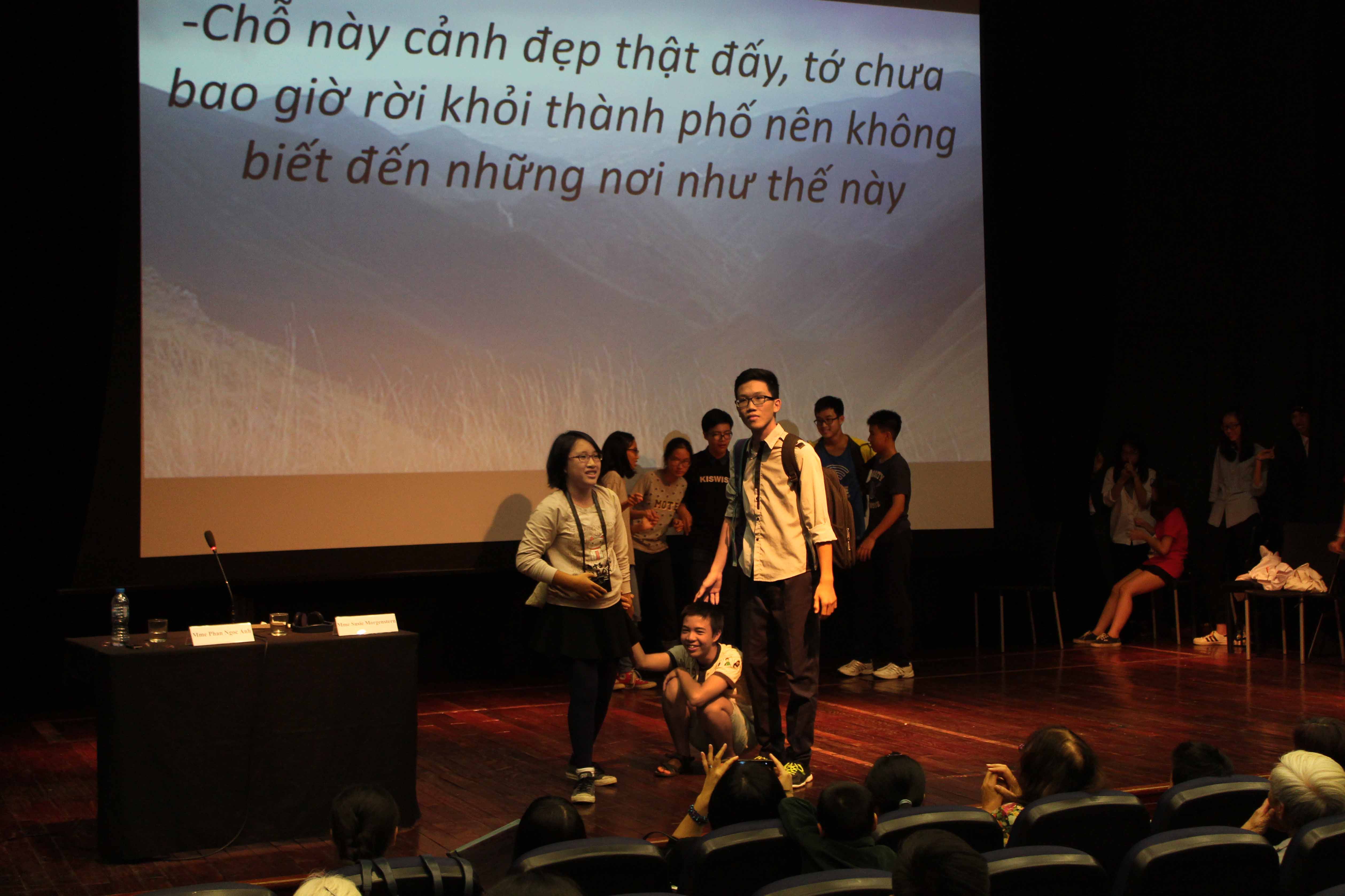 Les élèves du lycée Hanoï-Amsterdam, eux, ont voulu aller plus loin en créant un autre sketch permettant de donner un nouvel éclairage sur cette amitié entre Victoire, Ernest et ses camarades dans « Lettres d’amour de 0 à 10 ». C’est Trần Nguyễn Ngọc Mai, une élève de 10ème, qui joue le rôle de Victoire: « Plus je lis, plus l'histoire me séduit. Ce livre réveille de vieux souvenirs et pose beaucoup de questions. Pourquoi on ne peut pas vivre comme Ernest? Pourquoi on ne peut pas devenir plus audacieux comme Victoire? Victoire, elle est toujours le symbole de toutes les filles de 10 ans d'hier et d'ajourd'hui. Tous les personnages suscitent beaucoup d’émotion. C'est pour ça que je continue à lire ce livre et à trouver des idées pour cette scène. »
