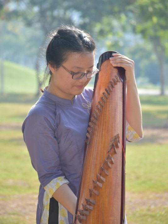 Membre d’un groupe spécialisé, Quynh Nhi voue une véritable passion à la culture et à l’histoire. Quant au đàn tranh, c’est après avoir lu les mémoires de l’éminent et regretté musicologue Trân Van Khê (1921-2015), qu’elle a décide d’apprendre à en jouer.