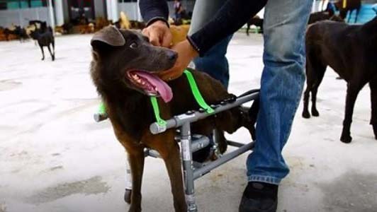 Des fauteuils roulants rudimentaires permettent aux animaux paralysés de marcher de nouveau | Photo: VOV |