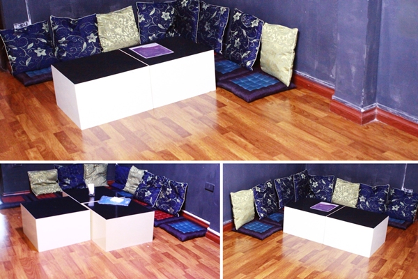 Nous sommes dans la salle d’attente du Resto-Cinema T-Box qui se trouve au 1er étage du quartier. Ce qui frappe en premier en arrivant à cette salle, les quatre murs sont couverts des posters, des affiches des films et les photos des boissons, des plats. Face des bancs d’attente, c’est le bar et la cuisine du type européen. Les personnels accueillent toujours les clients avec les sourires aux lèvres. Bref, un group de quatre filles sortent l’auditorium, descendent l’escalier en faisant des remarques des films sans cesse. Elles ont vu une comédie : "C’est la première fois que mon group vient ici. Ce café – film est un peu différent mais étonnant par rapport les grands cinémas qui nous permet de voir ensemble les films en goûtant des bons plats et des bonnes boissons. A citer que le prix est bon marché et que les personnels sont pleins enthousiasmes."