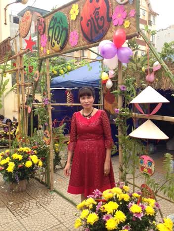 Vũ Thị Thành, la directrice de l’école : « Pour ce qui est de la décoration, ça dépend de chaque classe. Mais il y a un thème commun qui est la vie rurale. Parler de l’identité rurale vietnamienne, c’est parler du bambou, du bananier, de la meule de paille.... Nous avons au total 18 stands, autant que de classes dans l’école. Tenez, ici, c’est une sorte d’auberge. Là, ça porte sur les îles et la mer… »
