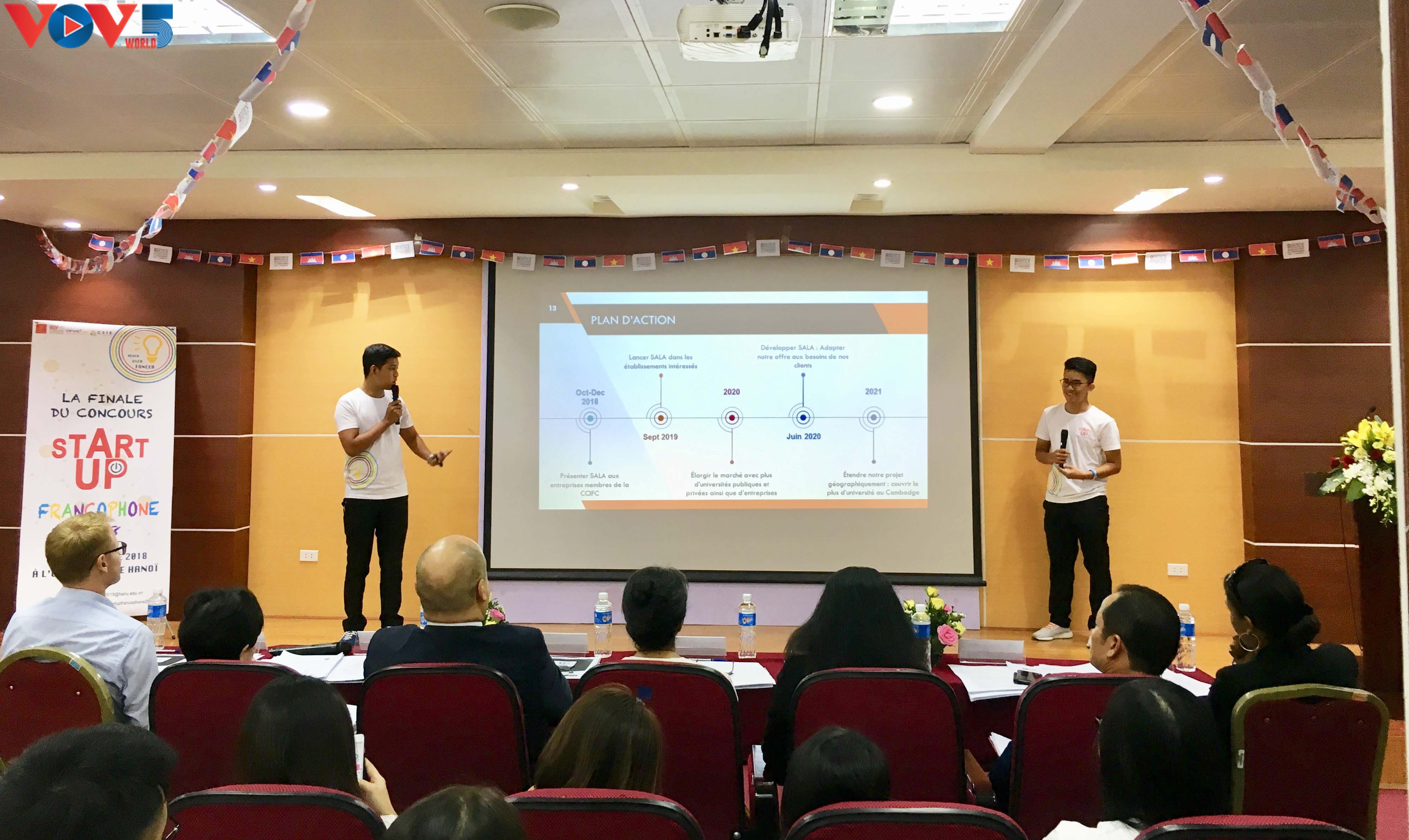 «Pour le concours ‘Start-up francophone 2018’, nous voulions créer une application de communication interne, opérationnelle dans les établissements scolaires cambogiens. L’application conçue permet aux universités d’entrer en contact avec les étudiants et aux entreprises de diffuser leurs offres d’emploi».