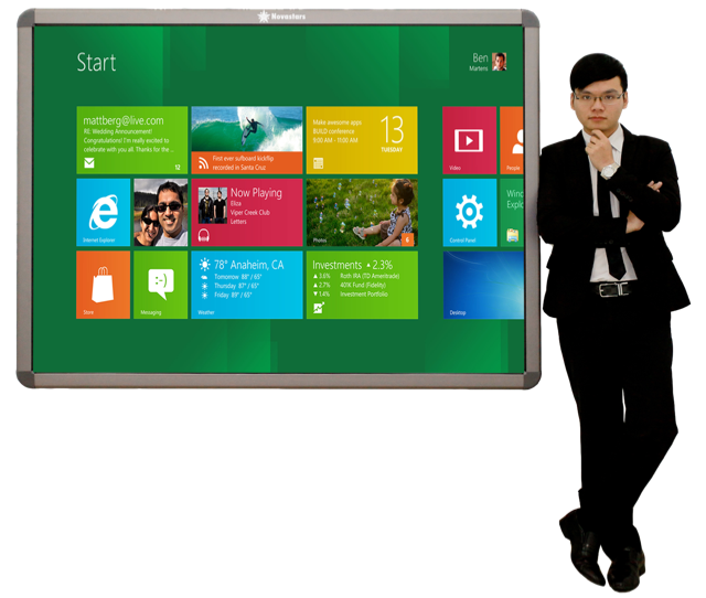 «Novastar, c’est un compromis entre le tableau noir traditionnel et l’ordinateur. Un système Novastar, c’est avant tout un écran 65 fois plus grand que celui d’une tablette ordinaire, mais aussi des applications interactives. Du coup, les leçons sont projetées sur l’écran depuis un ordinateur et on peut constamment modifier l’image, faire apparaître des textes, en masquer d’autres, simplement avec la souris. Ce que nous voudrions faire, c’est proposer ce genre de technologies dans les écoles maternelles: il est clair que les enfants, les tout petits notamment, sont très sensibles aux changements de couleurs, aux images qui défilent… Novastar, pour eux, c’est une approche très ludique, finalement. Ils peuvent agir sur l’image très facilement, avec les doigts même.»