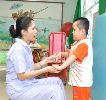 « Ici, il faut savoir rester calme et patient, insiste Nguyen Ha Ly. C’est ce qui nous permet d’entrer en contact avec ces enfants. Chaque enfant suit ce qu’on appelle un « itinéraire » dont les étapes peuvent nous aider à surveiller de près son développement. »