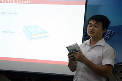 Pour créer ce logiciel, les 5 étudiants du Département de technologie de l’information de l’école supérieure de l’Agriculture de Hanoi n’ont pas ménagé leurs efforts pendant 2 ans consécutifs. Dinh The Duy, initiateur de ce dictionnaire.