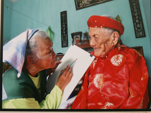C’est depuis maimtenant très longtemps que Đặng Ái Việt poursuit son rêve de dessiner le portrait des mères vietnamiennes héroïques dans tout le Vietnam. Mais son rêve n’est devenu réalité qu’en 2010. Cadre de l’Union des femmes de libération pendant la résistance anti-américaine, elle admire les femmes qui ont vécu la guerre. En février 2010, elle a pris sa mobilette Chaly, et fait route pour le Nord. Pendant 3 ans, elle a fait une course contre la montre pour réaliser le portrait des mères qui ont mis au monde des héros qui se sont sacrifiés pour la patrie. Jusqu’au 27 avril dernier, Đặng Ái Việt a réalisé au total 1.022 portraits de mères vietnamiennes héroïques. Elle partage avec nous son expérience: « Je respecte toutes les mères vietnamiennes héroïques, toutes de la même façon, dans la tête et dans le coeur, et sans aucune distinction. Il y a pourtant des mères pour qui j’éprouve la plus grande compassion, celles qui ont perdu leur enfant unique. Toutefois, toutes les mères m’ont fortement émues, et je peux me rappeler de chacune d’elles. »