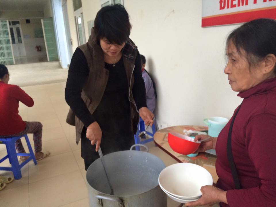 Depuis 2 ans, les patients déshérités de la polyclinique du district de Bao Thang se réjouissent du potage de riz distribué par l’enseignante Nguyên Thi Hiên et les membres de l’association «Bol de potage du coeur» tous les lundis, mercredis, vendredis et dimanches matins. Nguyên Thi Hiên, sa présidente: « J’étais enseignante dans les zones montagneuses et reculées durant 10 ans. Mes élèves étaient démunis. Je préparais souvent du riz pour eux. Une fois, quand je rendais visite à mon frère malade dans un hôpital, j’ai découverte le programme « resto du coeur ». Je l’ai bien apprécié et j’ai décidé de créer l’association « Le bol de potage du coeur ».