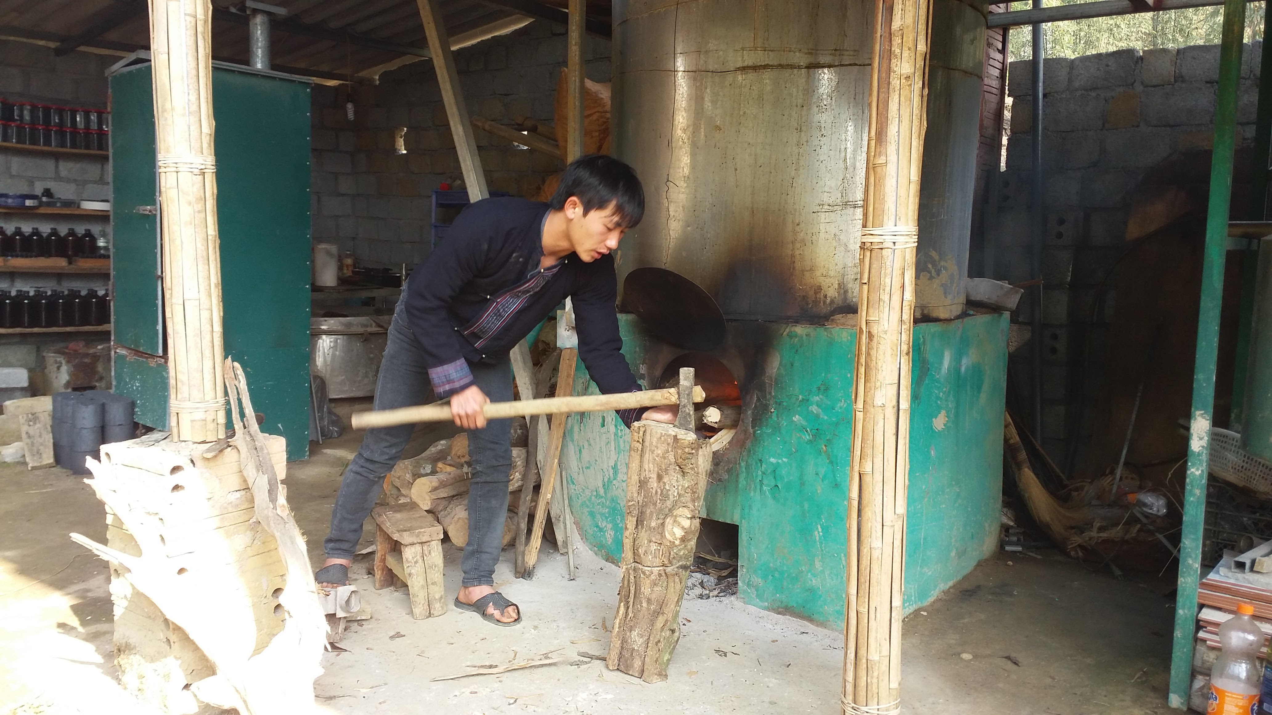 Pour s’assurer de l’approvisionnement en matières premières, Má A Nủ plante près de 20 hectares de gingembre, de citronelle, de tsaoko, de camphre et exploite des dizaines d’hectares de plantes médicinales dans les forêts. En haute saison, il doit mobiliser jusqu’à 30 ouvriers pour cueillir les plantes médicinales.
