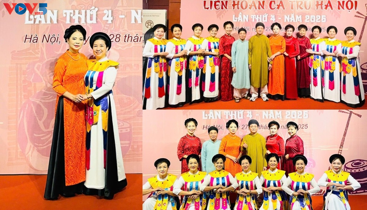 L’artiste émérite Vân Mai, accompagnée des membres du club "Bích Câu Đạo Quán", participe au 4ᵉ Festival de ca trù de Hanoï en 2025. Photo : Kim Liễu/VOV5 |