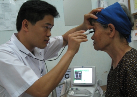 ![]() Le docteur Vu Manh Ha lors d'une campagnes de consultation et d’opération ophtalmologique gratuite dans tous les districts de la province de Hà Giang