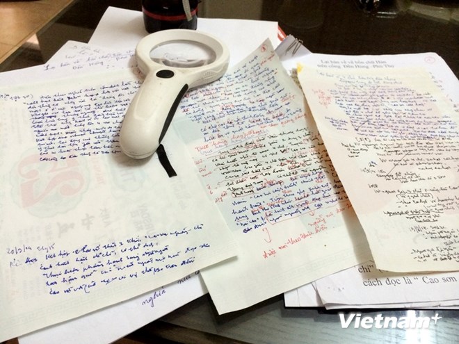 « A l’université, j’ai suivi des cours parascolaires d’écriture démotique sino-vietnamienne. J’étais autodidacte car j’adore la culture ancestrale. Après la prise du contrôle de la capitale en 1954, j’ai été affecté au bureau des musées du service municipal de la culture. A ce moment-là, mon niveau en écriture démotique sino-vietnamienne était assez élevé et j’étais déjà passionné par la culture de mon pays. »