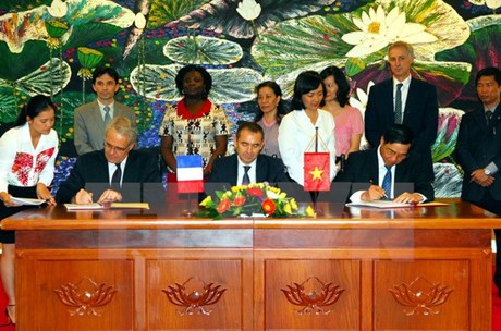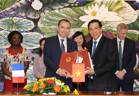 L’ambassadeur de France au Vietnam Jean-Noël Poirier, le vice-ministre vietnamien des Finances Truong Chi Trung et le directeur de l’Agence française de Développement au Vietnam Rémi Genevey ont signé le 19 mai une convention de crédit relative à la cinquième tranche du « Programme d’appui en réponse au changement climatique ». Un prêt de 20 millions d’euros sera ainsi octroyé au gouvernement vietnamien pour le soutenir dans la mise en oeuvre de ses stratégies. Truong Chi Trung, vice-ministre vietnamien des Finances: