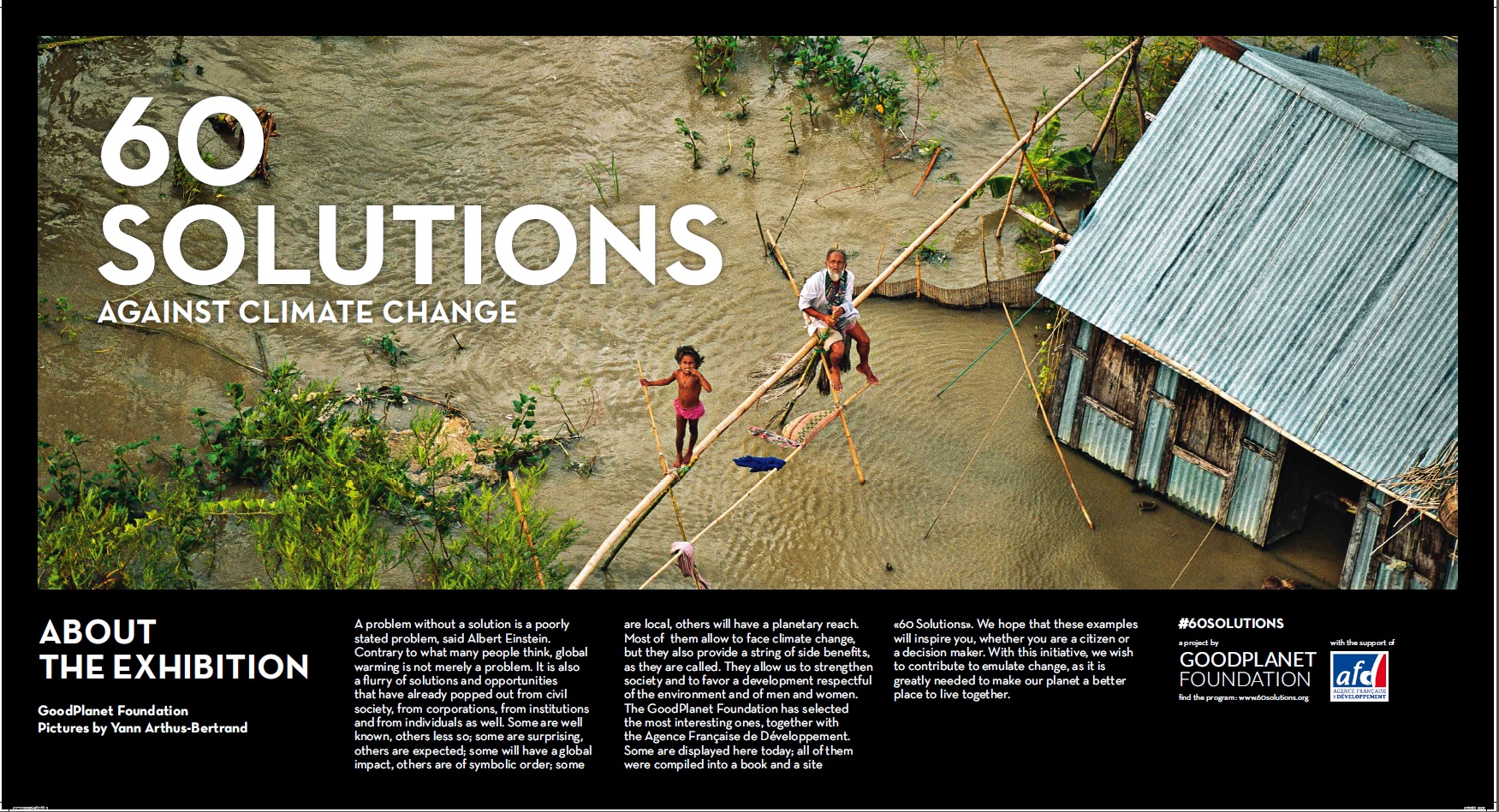 Cette exposition a pour principal objet de faire connaître à un vaste public ce que sont les manifestations du changement climatique et ce que peuvent être les mesures pour permettre aux populations de s’y adapter et pour permettre par les investissements de réduire les émissions de gaz à effet de serre qui causent le changement climatique.