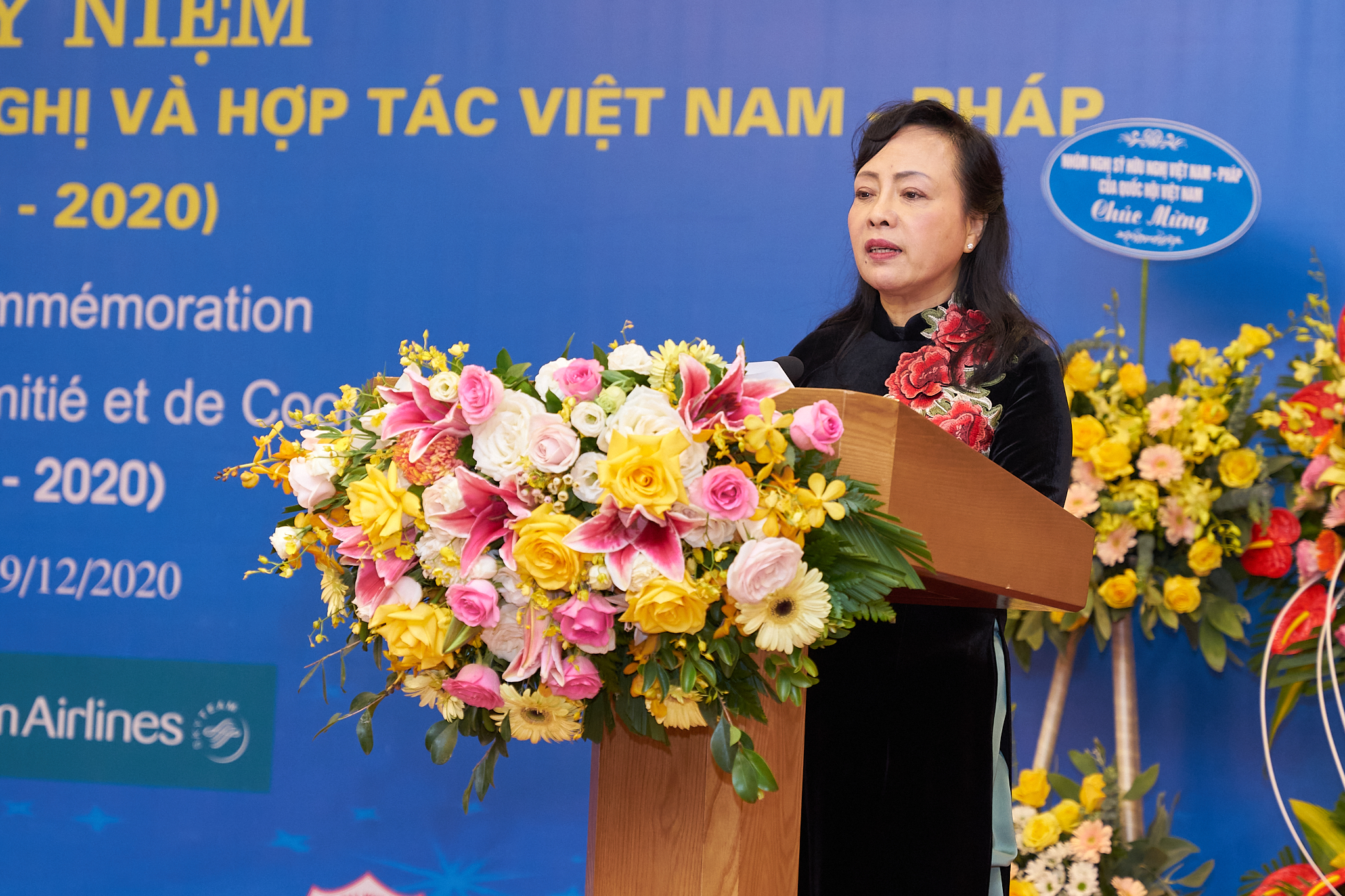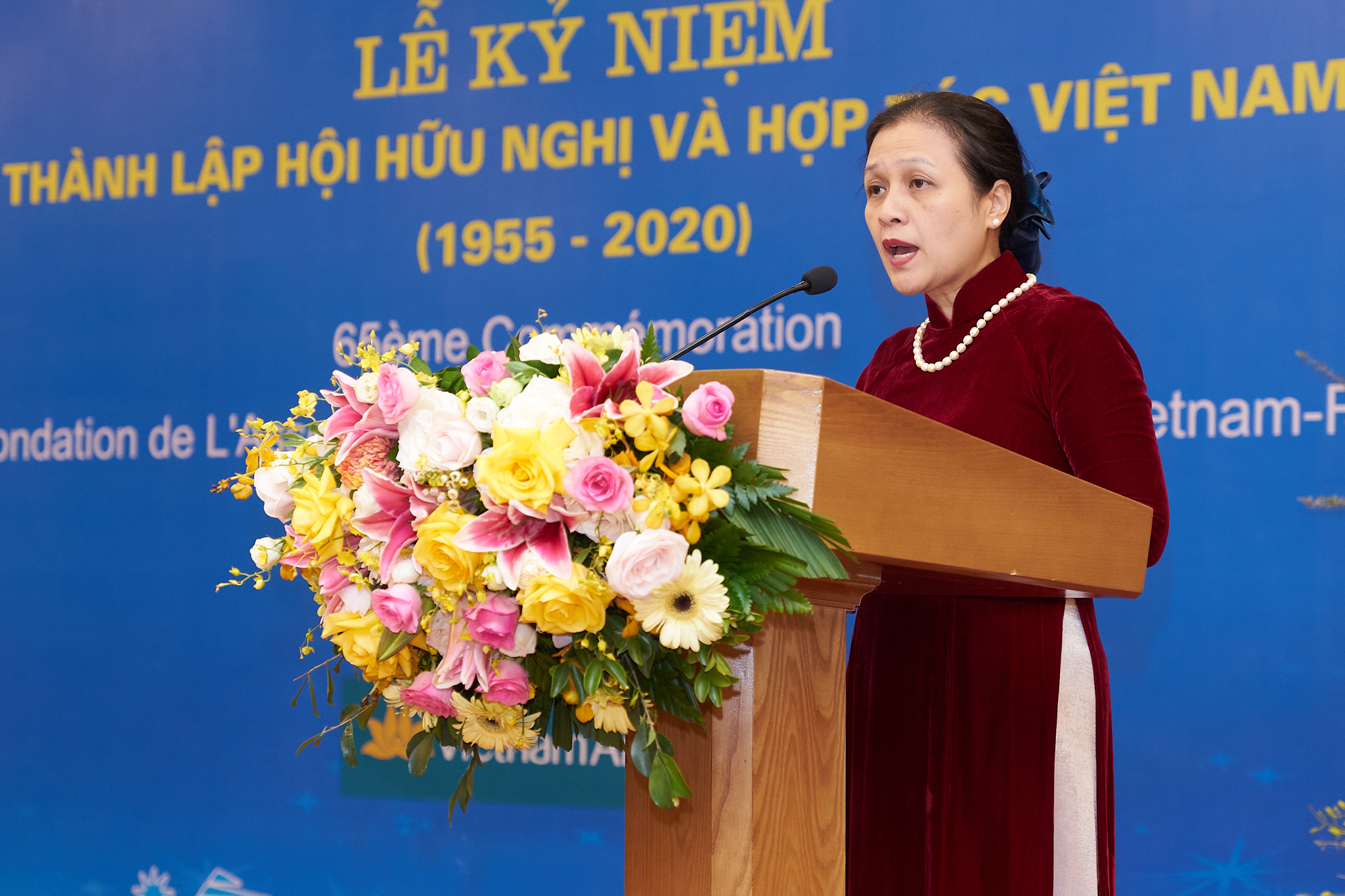 "Nous profitons de cette occasion pour rendre hommage à notre regretté Président Hồ Chí Minh, qui a posé la première pierre de l’établissement d’une relation modèle et fidèle entre les deux peuples. Nous souhaitons également rendre hommage aux distingués ambassadeurs populaires, premiers artisans de l’Association: le médecin et professeur Hô Dac Dy, président du Comité de sensibilisation à la création de l’Association ainsi qu’à quatre de ses membres: l’ingénieur Kha Vang Cân, le médecin et professeur Dang Van Chung, l’avocat Nguyên Manh Tuong et le professeur Nguy Nhu Kon Tum, ainsi qu’aux présidents de l’Association. L’Union des organisations d’amitié du Vietnam salue les contributions de l’Association d’amitié et de coopération Vietnam-France dans le développement du pays ainsi que dans la diplomatie du peuple.", a-t-elle déclaré.