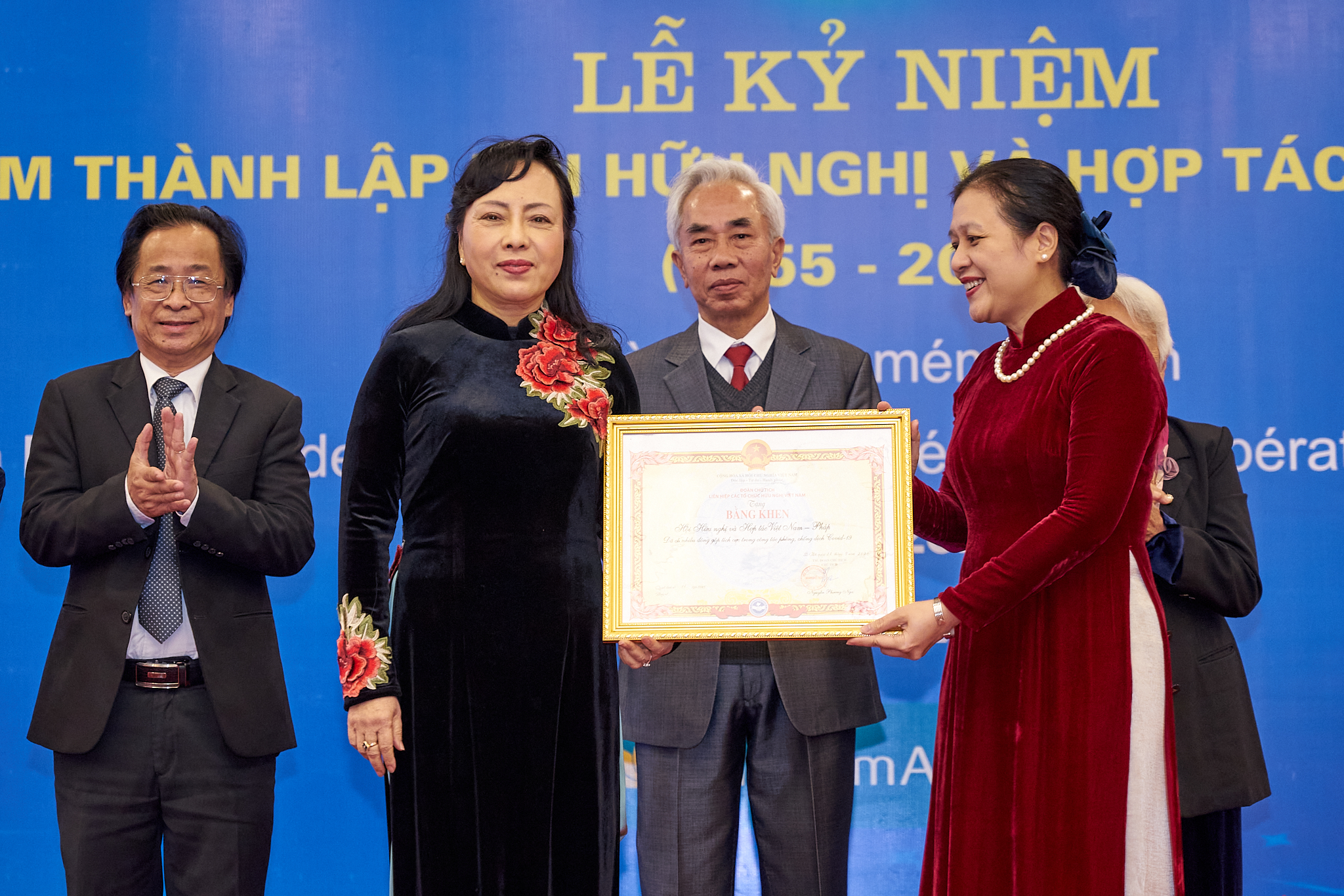 L’Association d’amitié Vietnam-France a été créée le 2 juillet 1955 sur l’instruction du Président Hô Chi Minh dans le but de développer chez les Français un sentiment de solidarité et de responsabilité envers le peuple vietnamien luttant pour la reconstruction de son pays, après sa victoire contre la France. Au nom de l’Union des organisations d’amitié du Vietnam (VUFO), sa présidente Nguyên Phuong Nga a souhaité rendre hommage aux personnalités ayant contribué de manière exceptionnelle au développement de l’association.