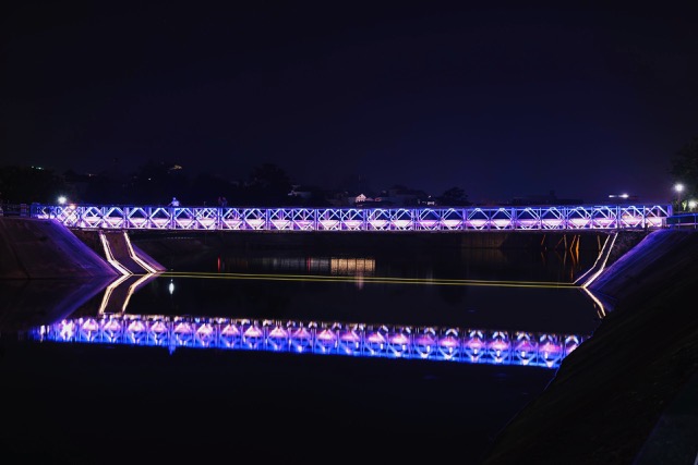 Le pont Muong Thanh a été illuminé avec l'aide équipes techniques de la ville de Lyon. Photo: ADF |