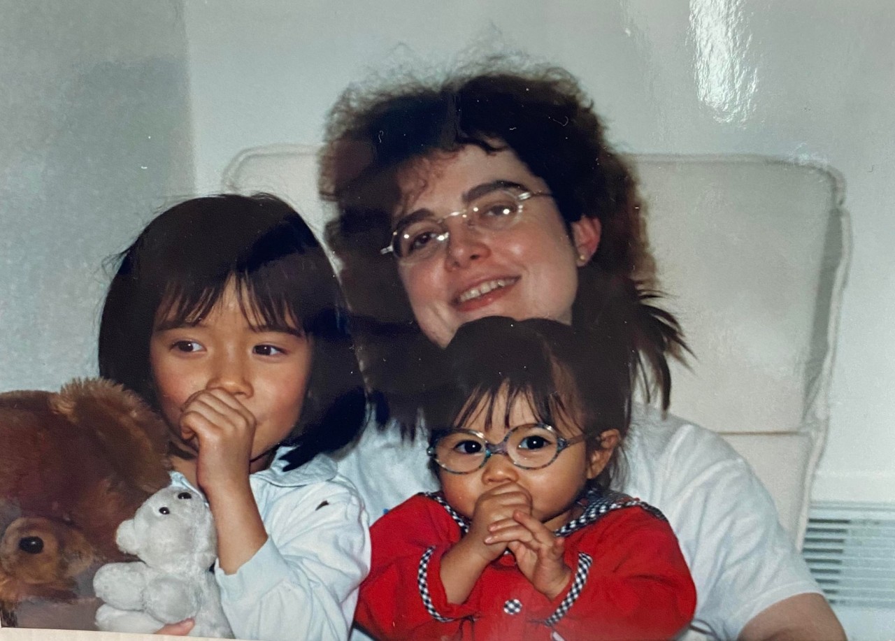 La mère adoptive de Solène Martel (milieu) et sa sœur adoptive vietnamienne (gauche) |
