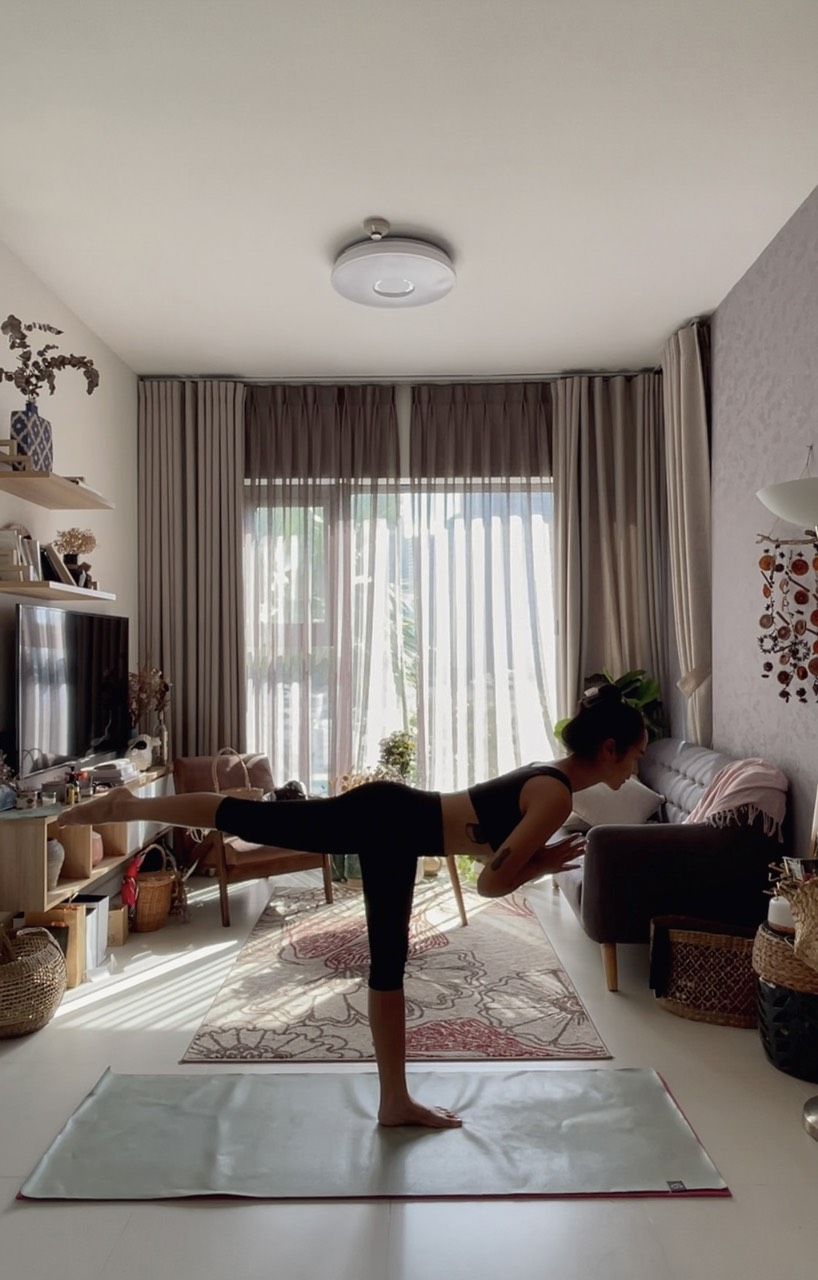 J’essaye de voir les choses sur le long terme plutôt que de privilégier les plaisirs immédiats. Juste avant la distanciation sociale, je m’étais fixée comme objectif d’améliorer mes compétences en yoga et de mieux manger. Mon but est vraiment de sortir de ce confinement au meilleur de ma forme. Si je devais donner un conseil, ce serait avant tout d’adopter un bon état d’esprit. Avoir un objectif et prendre du plaisir à faire les choses... Il ne faut pas se mettre la pression mais plutôt s’écouter, examiner ce qui peut être amélioré pour notre bien. Ca peut même juste être moins manger de sucre par exemple. Le plus important est de cultiver le respect et l’amour de soi. Dans notre monde actuel, on peut parfois s’oublier et ne pas assez prendre soin de soi. Trouver son équilibre et lâcher prise est un travail quotidien. Il ne faut pas non plus rentrer dans les extrêmes, si tu as envie d’une part de gâteau au chocolat de temps en temps, alors fais-toi plaisir!