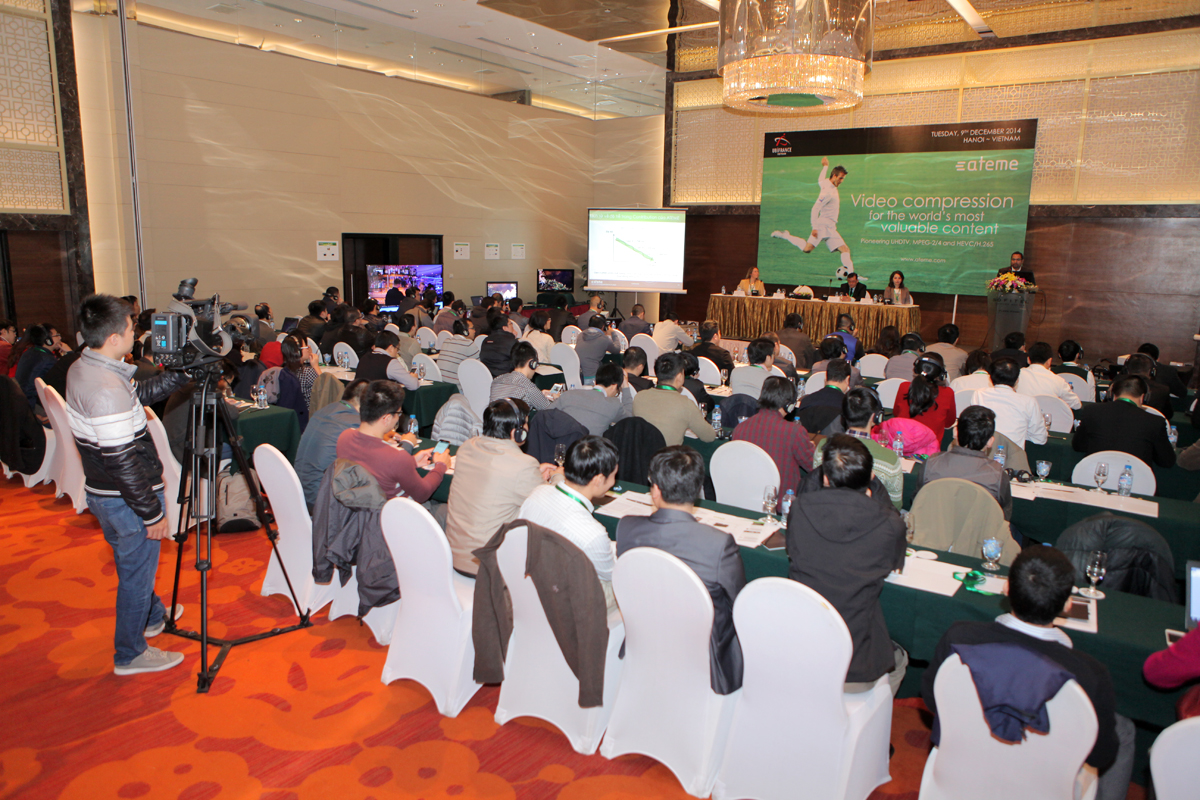 « ATEME a développé en fait un nouveau format de video HD qui s'appelle HEVC. Et c'est très utile pour tout ce qui est diffusion de contenu OTT, vidéo à la demande, vidéo sur des télévisions 4k ou ultra HD. L'objectif de ce séminaire est de faire connaître ATEME, qui est une société peu connue. Ils ne sont pas visibles mais ils travaillent activement dans le monde entier. Dont on a invité une centaine de personnes qui sont des professionnels du secteur de l'audiovisuel et des télécommunications. »