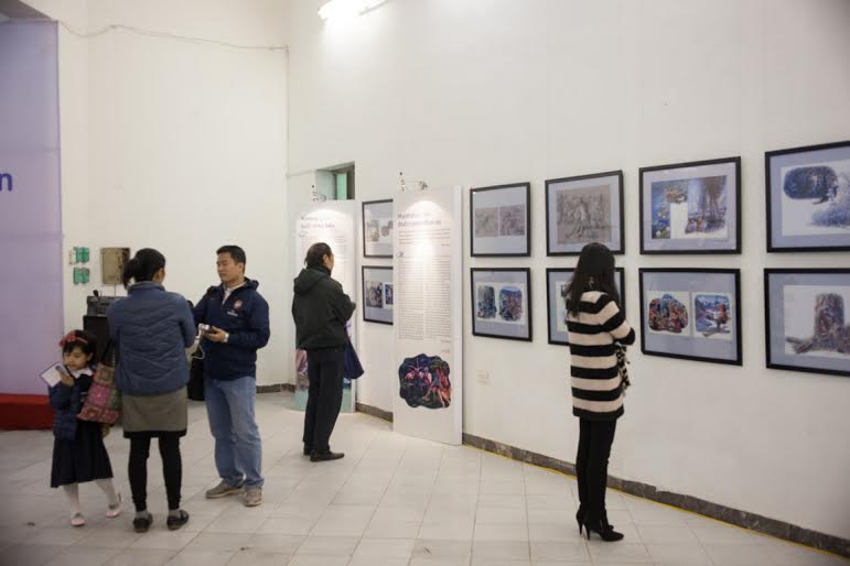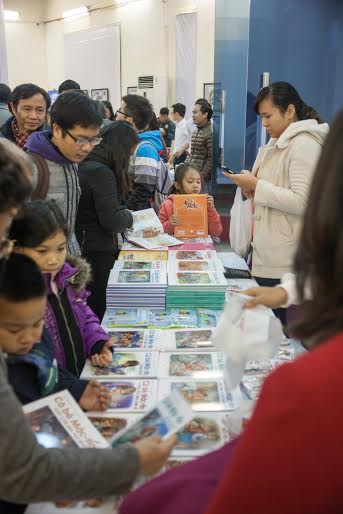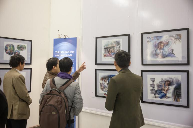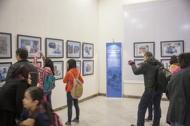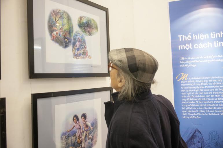 Dans un coin, deux hommes discutent. Xuan Hoan, l’un d’entre eux, nous livre ses impressions : « Les illustrations sont très vivantes et expriment bien les sentiments et les expressions des personnages. Les décors, aussi, sont très soignés, de même que la lumière. C’est magnifique ! Je suis impressionné par l’image qui montre Martine malade. C’est très expressif ! Rien que de la regarder, on se sent fatigué ! »
