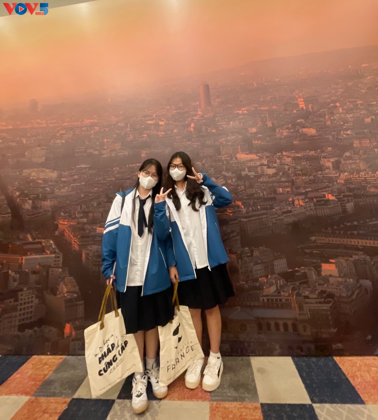 Nguyen Phuong Anh et Đông Thi Bao Linh, du lycée d’élite Nguyên Trai, de la province de Hai Duong. Photo: Phuong Anh/VOV5 |