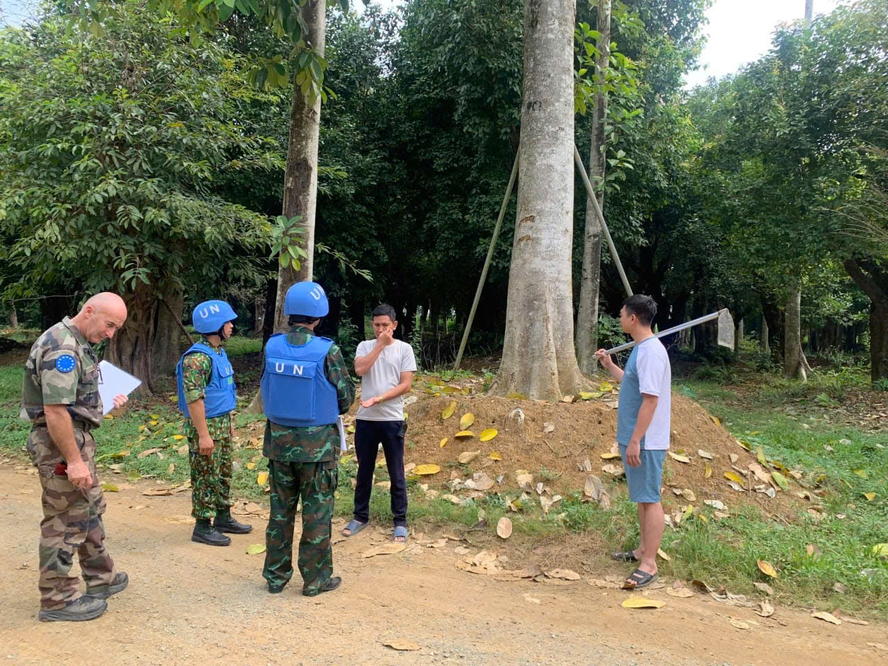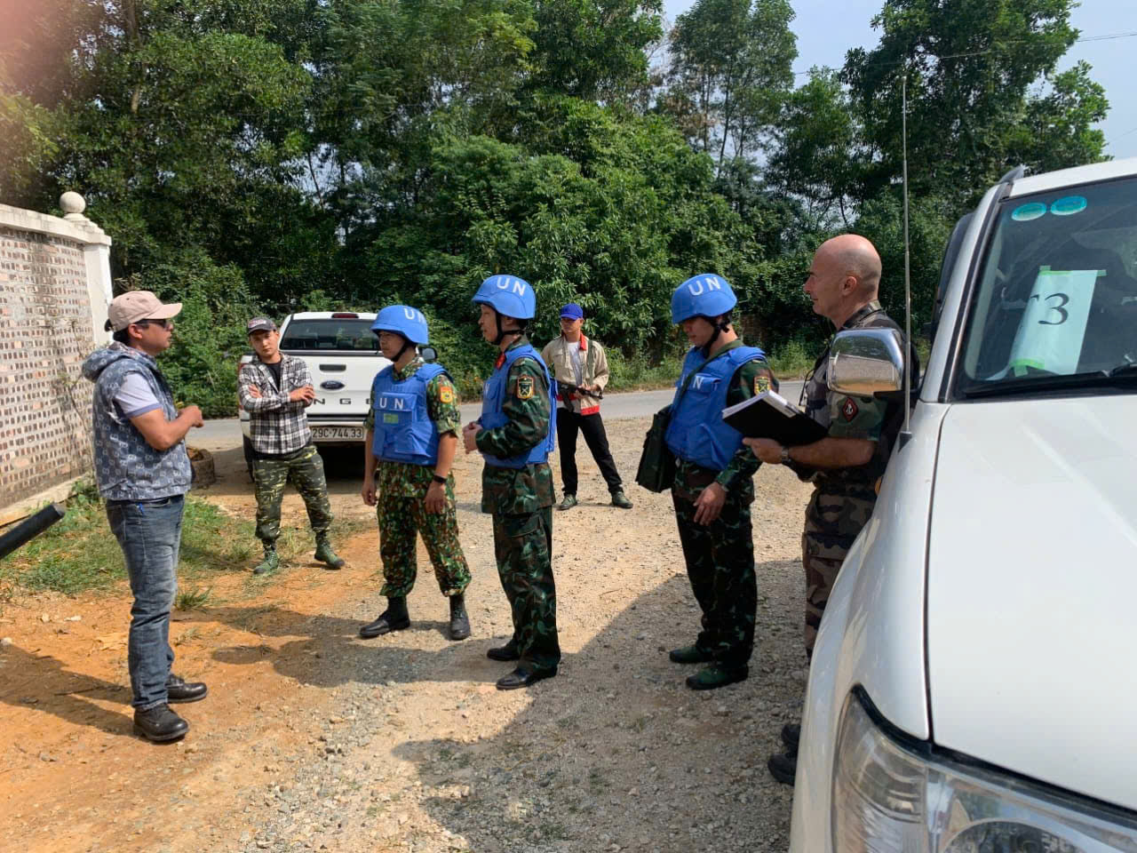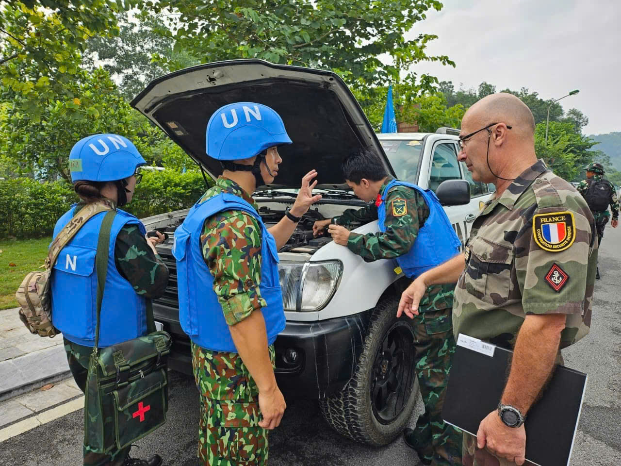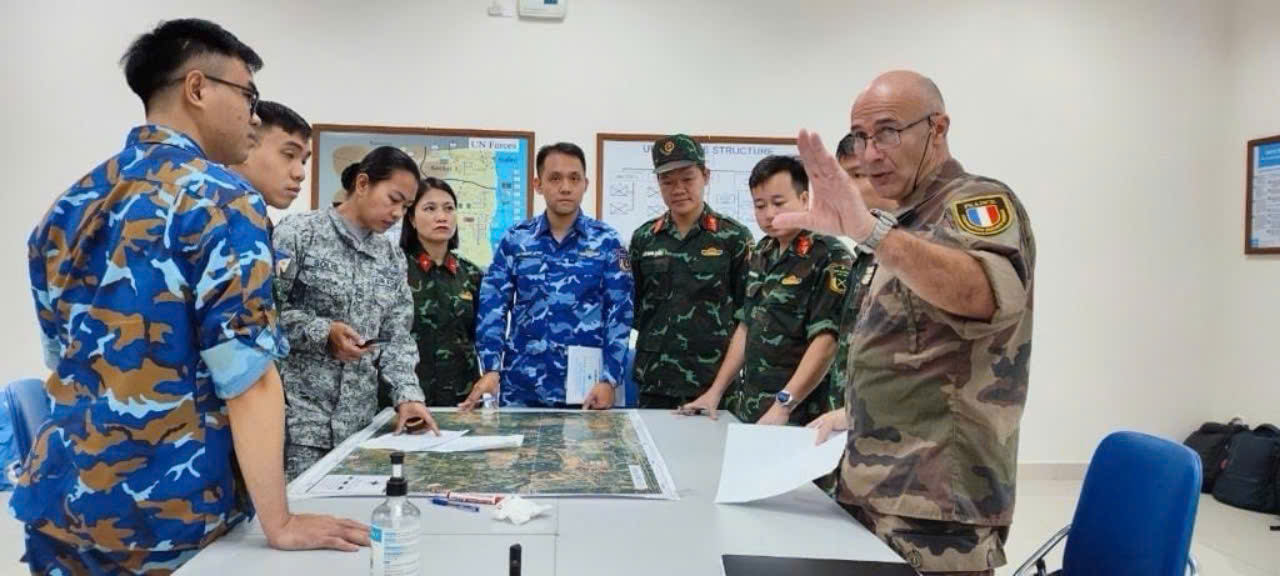 Lieutenant-colonel Fabien Evesque: Bonjour Loan et bonjour les auditeurs de la Voix du Vietnam. Oui, dans le cadre des accords de coopération avec l´Union européenne, je suis instructeur au centre de formation du Département vietnamien des opérations de maintien de la paix (VNDPKO). À ce titre, je suis intégré au centre de formation du département et je forme les stagiaires lors des formations individuelles ou collectives au cours de leur formation avant leur déploiement en mission de l´ONU. Ces stages sont appelés cours pré-déploiement mais il y a aussi les stages spécifiques comme les stages d´observateurs ONU ou officiers d´état-major pour l´ONU. Ces formations comprennent des cours théoriques mais aussi des exercices pratiques sur le terrain. Dans le cadre de la coopération européenne, je suis aussi en charge de la préparation et de l´envoi en Europe d´officiers vietnamiens qui vont suivre des formations en Europe. Il y en a eu trois cette année. De plus, je suis aussi en charge de la préparation et de l´envoi des officiers vietnamiens qui participent à la mission d’entrainement européenne en Centrafrique appelée EUTM RCA.