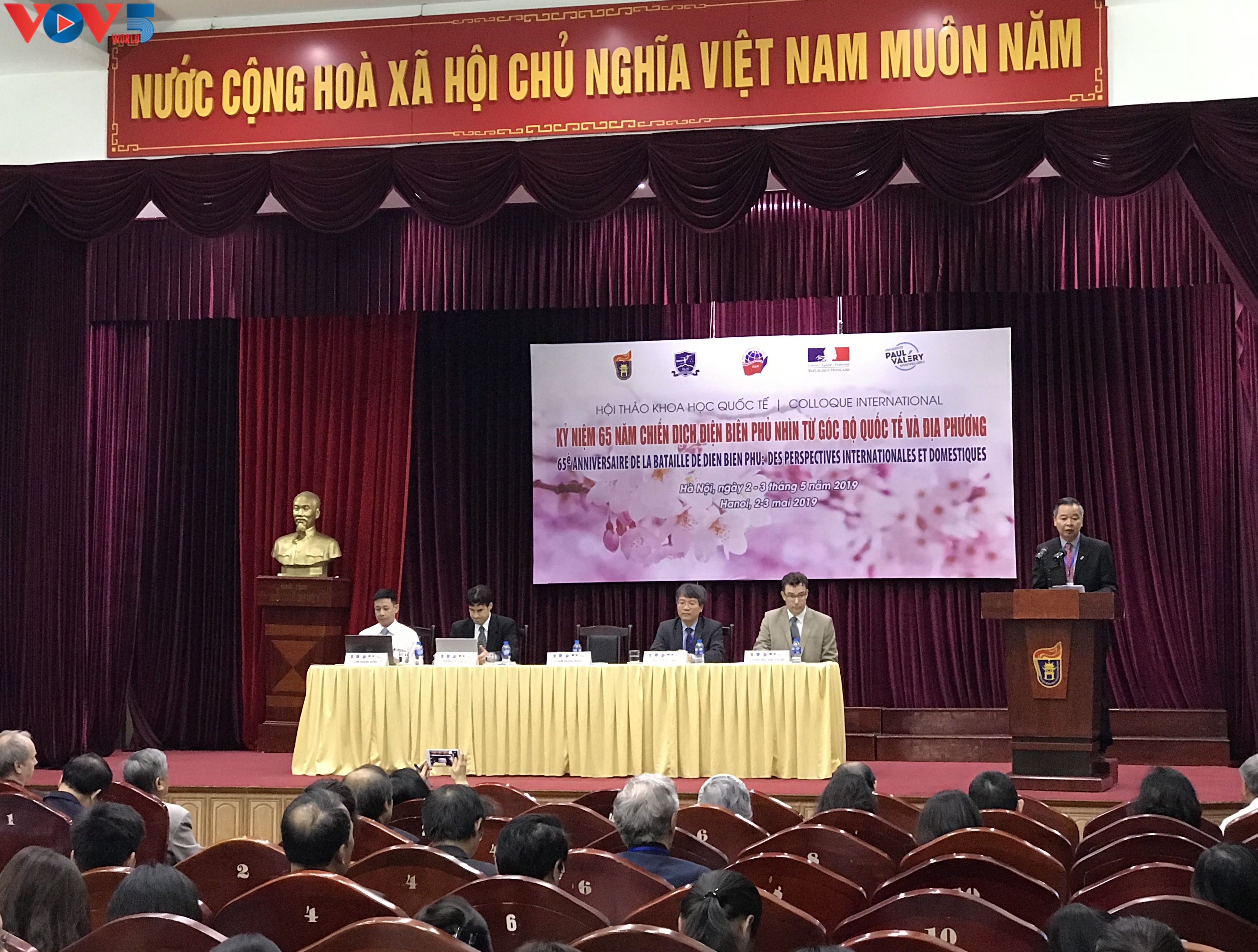 Placé sous le thème «65e anniversaire de la bataille de Diên Biên Phu: perspectives au Vietnam et à l’étranger», ce colloque était organisé, côté vietnamien, par l’Université des Sciences sociales et humaines, l’Université de Langues et d’Études internationales et l’Académie diplomatique du Vietnam, et côté français, par l’Ambassade de France au Vietnam et l’Université Paul-Valéry de Montpellier.