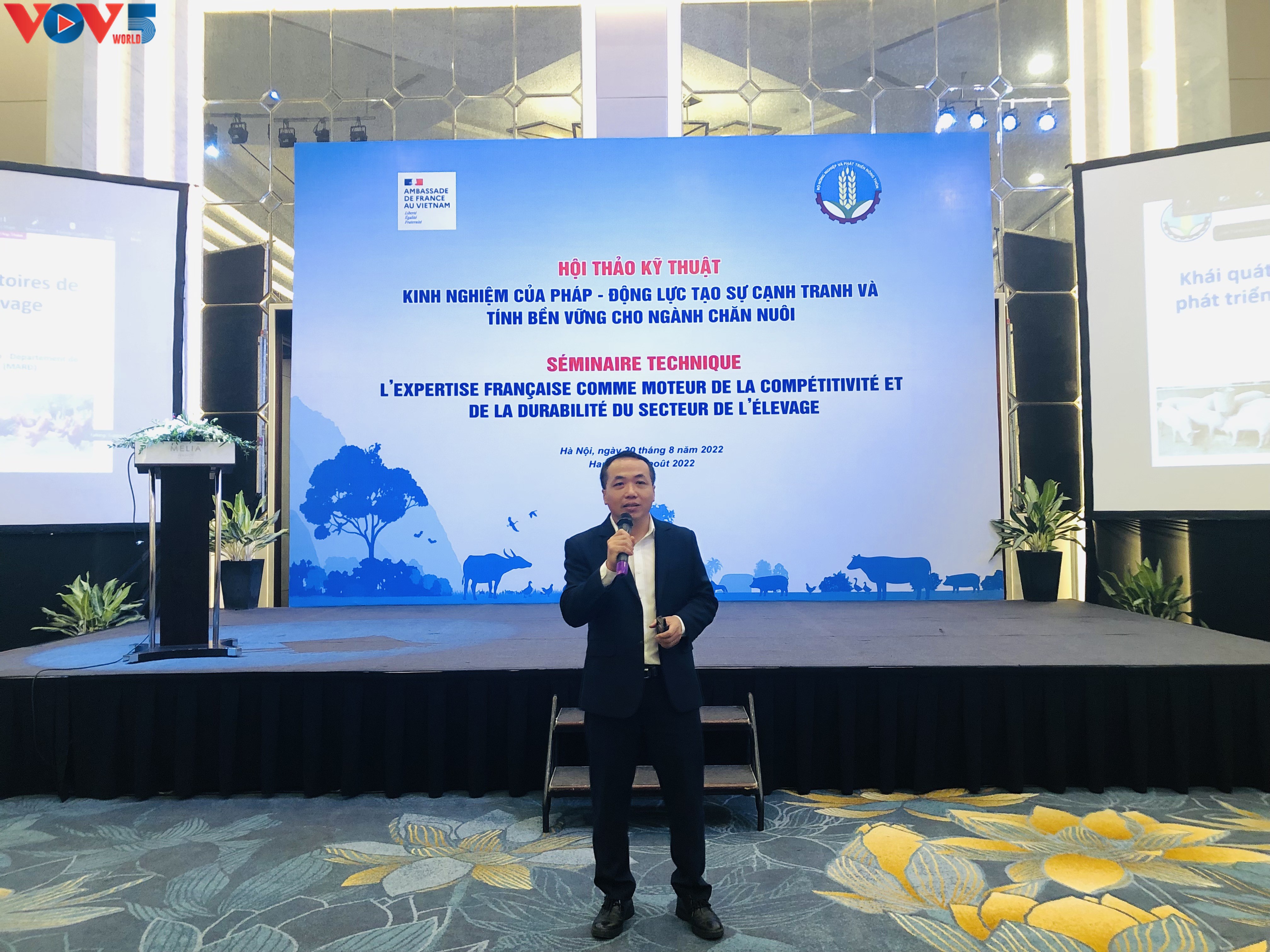 «L’ambassade de France a cherché à organiser ce séminaire conjointement avec la direction des relations internationales du ministère de l'Agriculture et du Développement rural autour de plusieurs objectifs: mieux identifier les besoins des élevages vietnamiens, faire connaître l’offre française en matière de conduite des cheptels, et faciliter les échanges de savoir-faire et d'expérience entre nos deux pays. On rappellera qu’un élevage durable et résilient joue un rôle clef pour la sécurité alimentaire. La France est à l'origine et soutient l’initiative FARM qui a pour objectif d’abaisser les barrières aux exportations, d’instaurer un mécanisme de solidarité avec les pays les plus vulnérables et de développer des modèles agricoles plus résilients», a-t-elle dit.