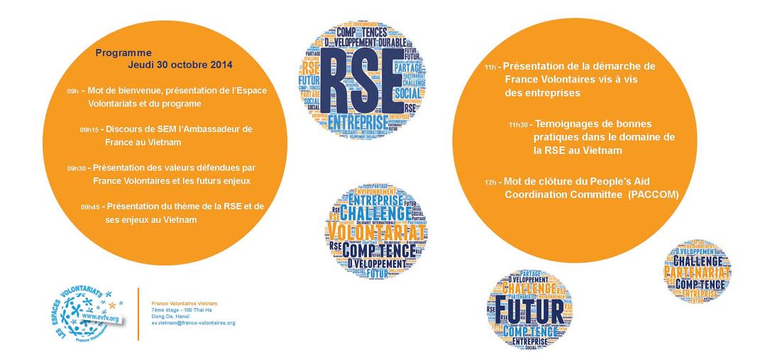 Cette année, nous avons retenu le thème du « volontariat et l’entreprise » parce que la diversification des ressources financières sera un challenge pour tous les acteurs du volontariat dans l’avenir. La rationalisation des dépenses publiques dans un contexte de crise de la dette publique fait que de nouveaux modèles économiques sont à trouver. L’une des solutions se trouve dans la mobilisation accrue de nouveaux partenaires financiers comme les entreprises. Elles-mêmes développent leur responsabilité sociale à travers de nouveaux partenariats avec le monde associatif. C’est ainsi que ces mondes, qui se connaissent mal – exceptés via des dispositifs particuliers, comme le VIE -, pourraient à l’avenir collaborer. Dans cette optique, cette Journée du Volontariat Français se veut un temps d’information sur le domaine de la RSE au Vietnam et sur les partenariats possibles entre entreprises et associations pour l’envoi de volontaires.